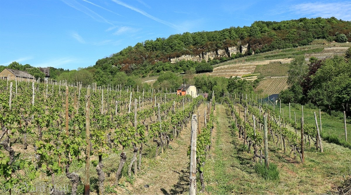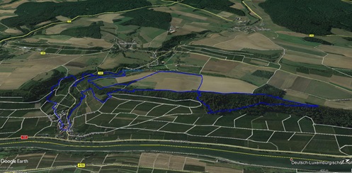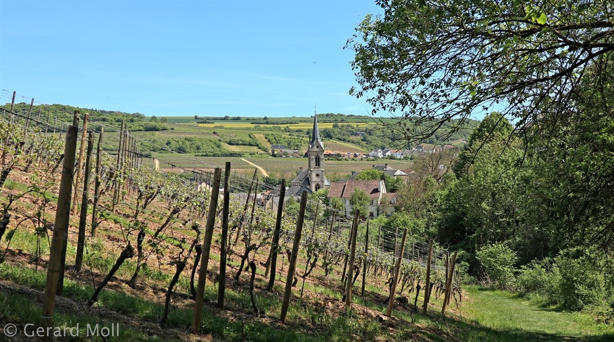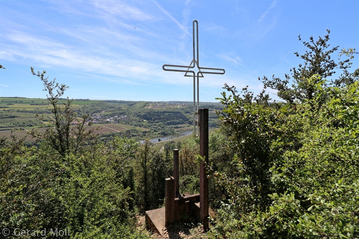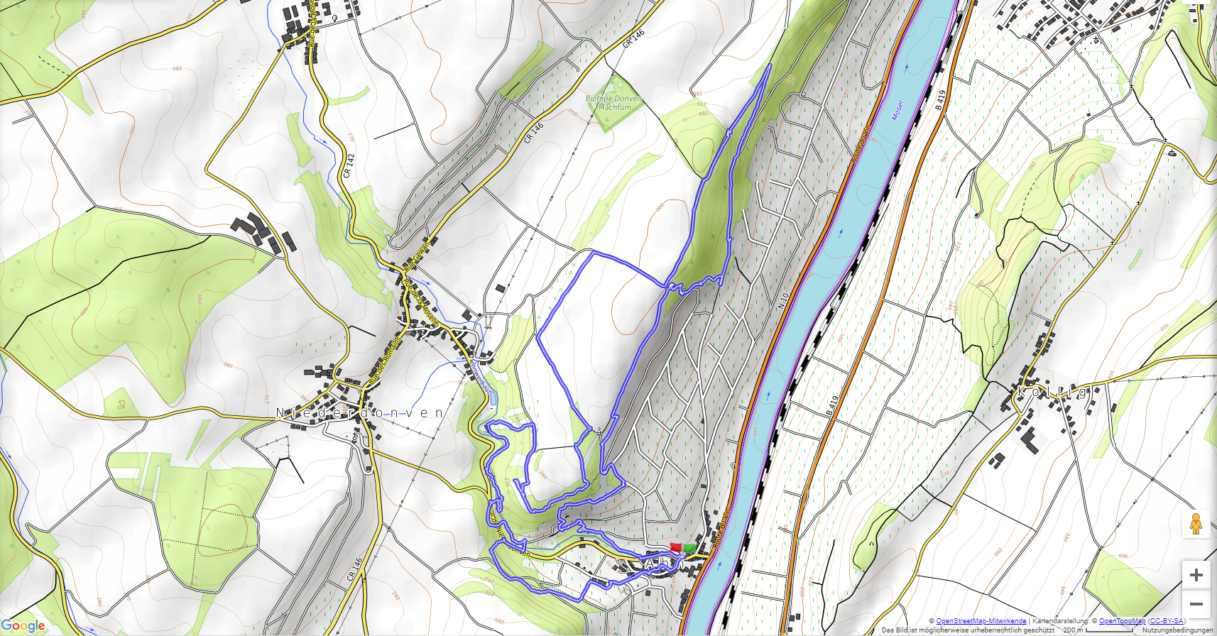 Wir starten in Ahn am Moselufer und wandern auf schmalen Pfaden am Donver Bach entlang. Danach geht es hinauf zu einer Hochfläche, die neben schönen Ausblicken auf Niederdonven und Ahn auch sehenswerte Orchideen zu bieten hat. Der Weiterweg führt zu einem weißen Kreuz mitten in einem herrlichen Buchsbaumbestand (Palmberg). Ein Blick auf die Karte zeigt, dass man den nördlichsten Zipfel der Tour ohne Probleme auslassen könnte, da er dem Wanderer nur einen längeren Abstieg mit anschließendem steilen Aufstieg beschert. Der schöne Weiterweg führt durch steilere Weinberge zurück nach Ahn.