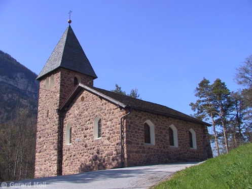 Bild in Lightbox öffnen (open image in lightbox). Die im ersten Drittel des 20. Jahrhunderts erbaute Kirche zum Hl. Franz von Assisi in Holen liegt östlich von Auer über der Schlucht des Schwarzenbaches.