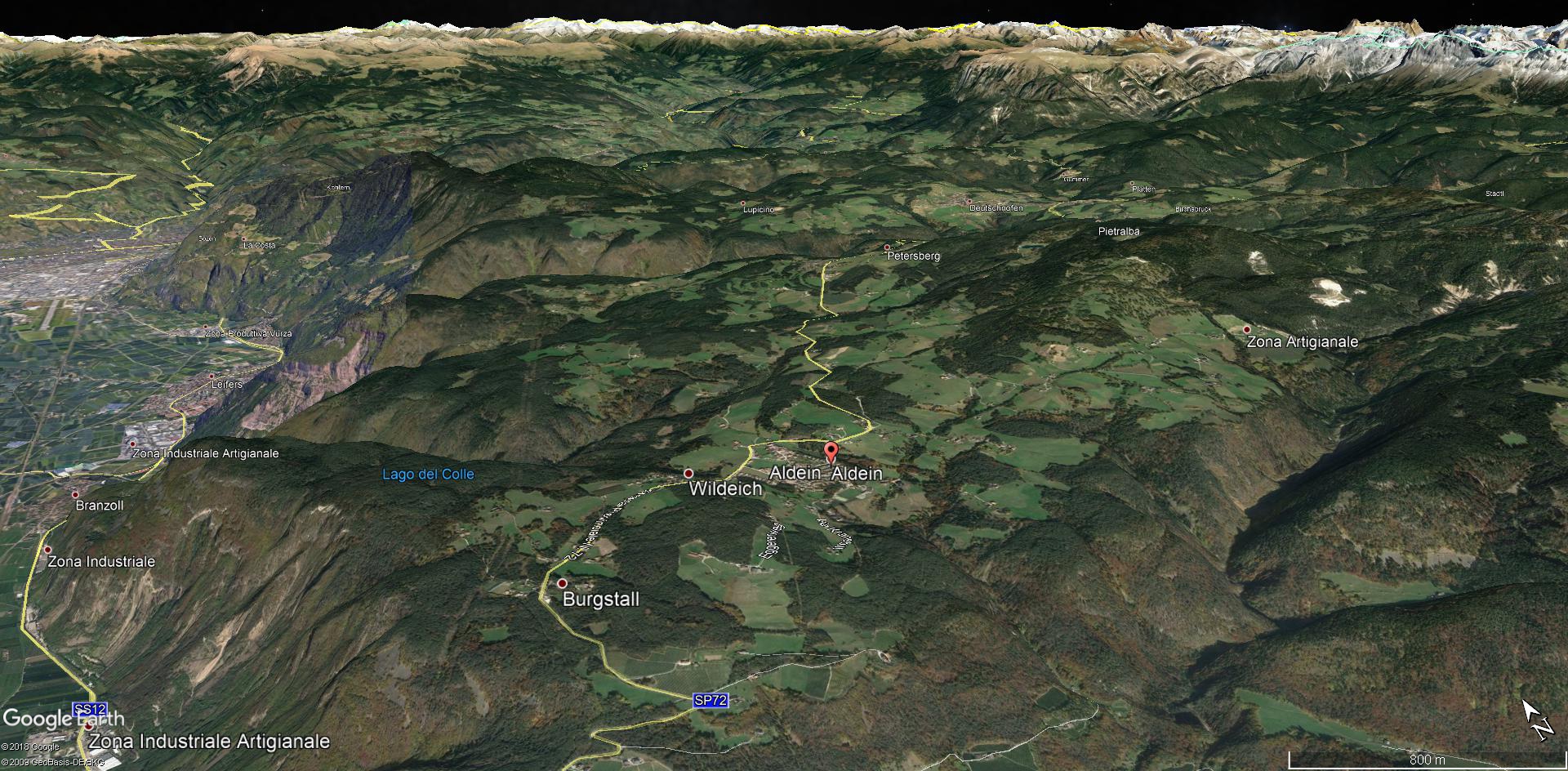Aldein liegt östlich von Auer auf einer Bergterrasse am Regglberg.