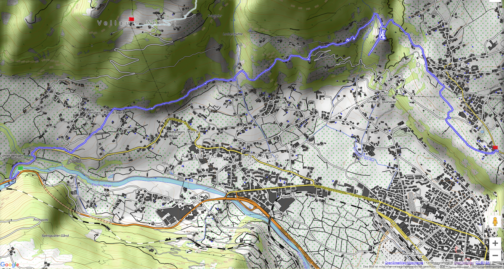 Algunder Waalweg - Dorf Tirol 630 m
