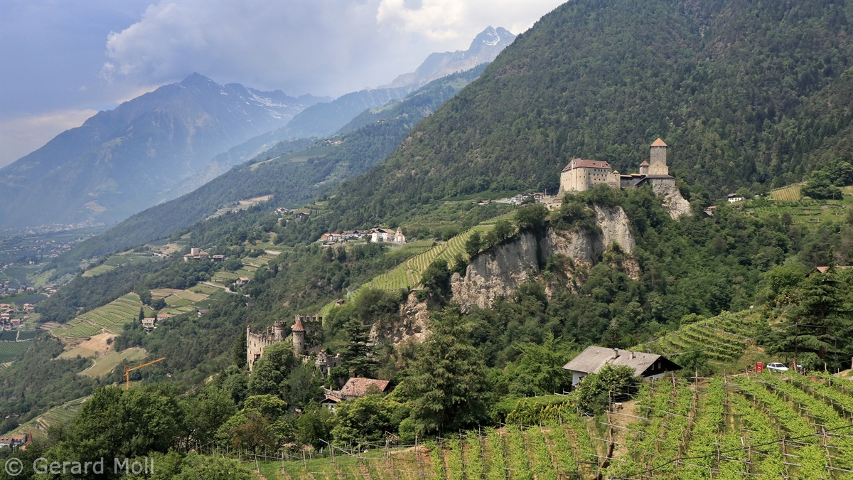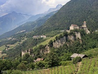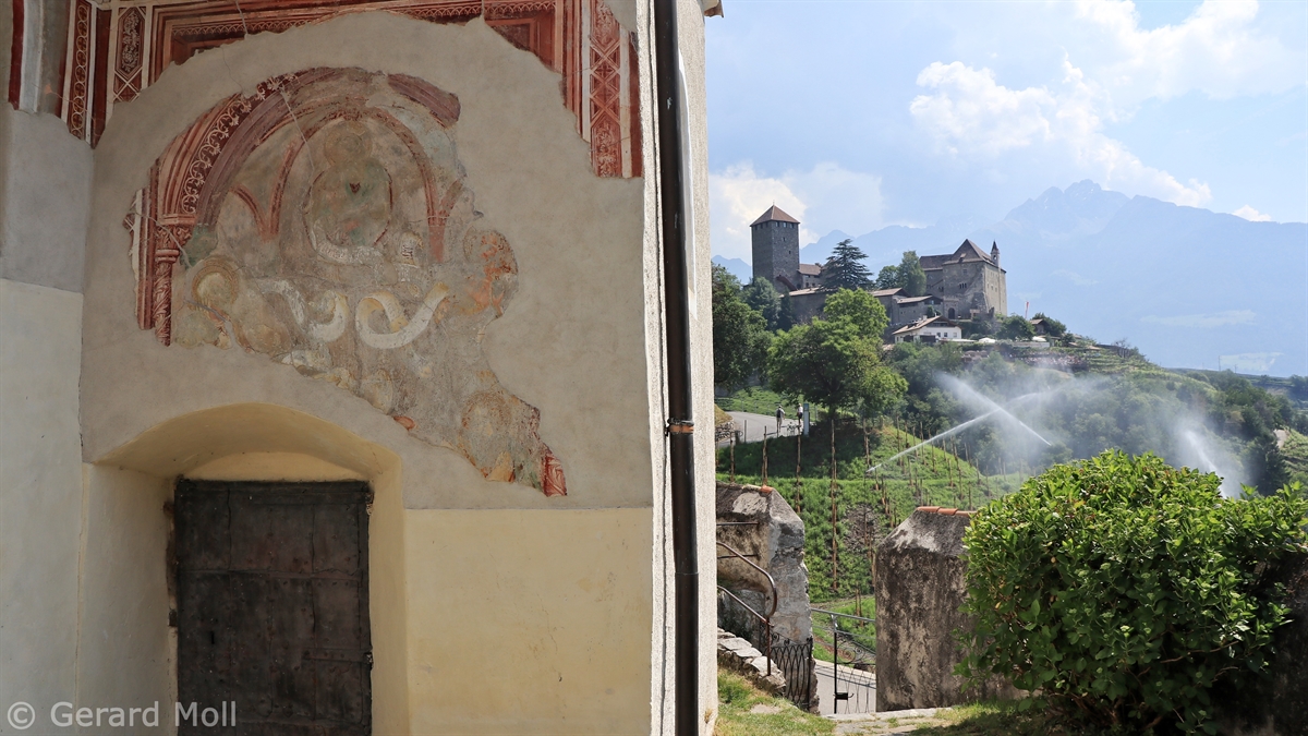 Von der Bushaltestelle an der Töll bei Algund wandern wir zum Beginn des Algunder Waalweges und folgen diesem so lange, bis wir hinauf nach Schloss Thurnstein steigen. Nach einer Besichtigung der uralten Kirche St. Peter in Gratsch geht es dann weiter zum Schloss Tirol. Nach einer Besichtigung gehen wir hinüber nach Dorf Tirol und fahren mit dem Bus zurück nach Meran (oder gehen über den Tappeiner Weg hinunter nach Meran).