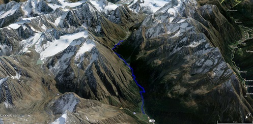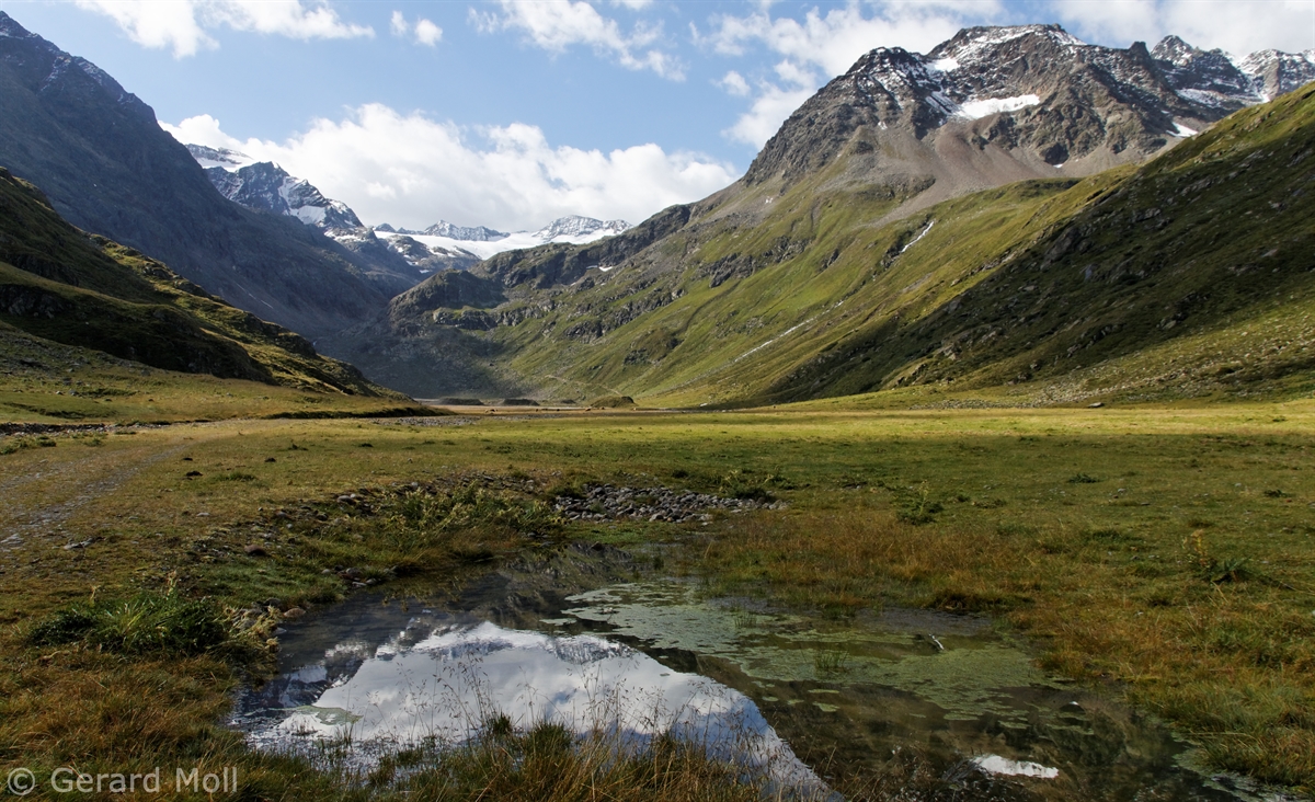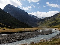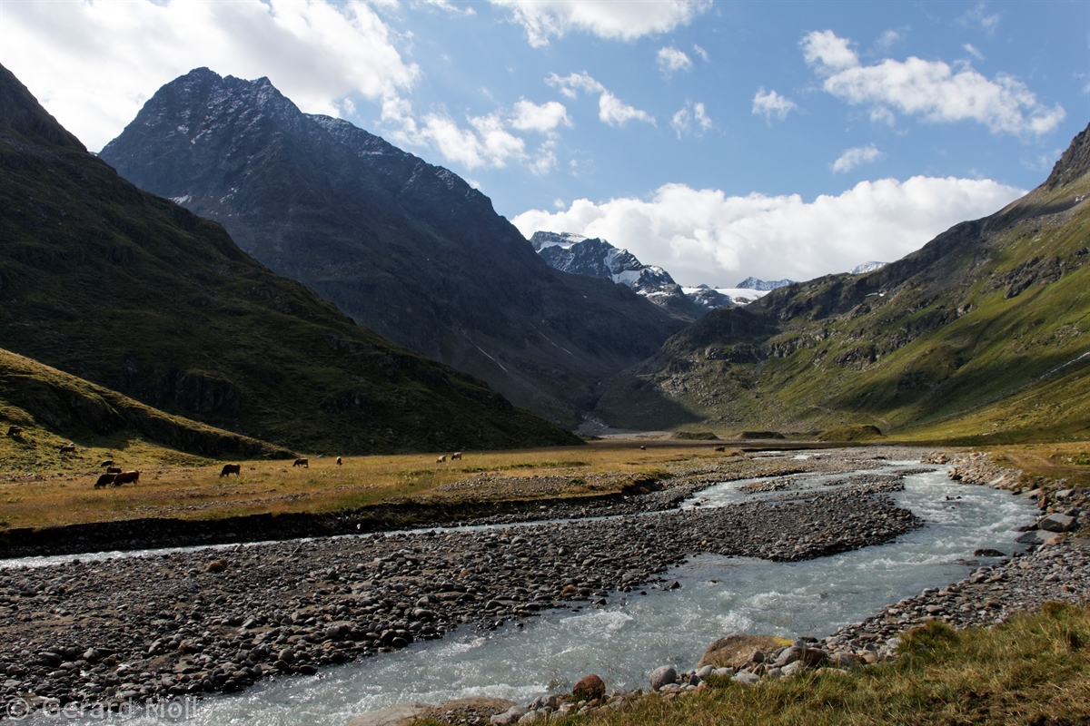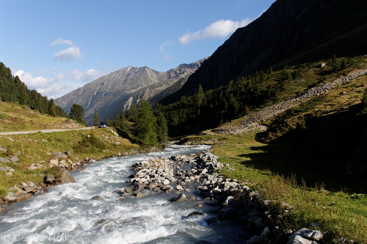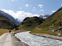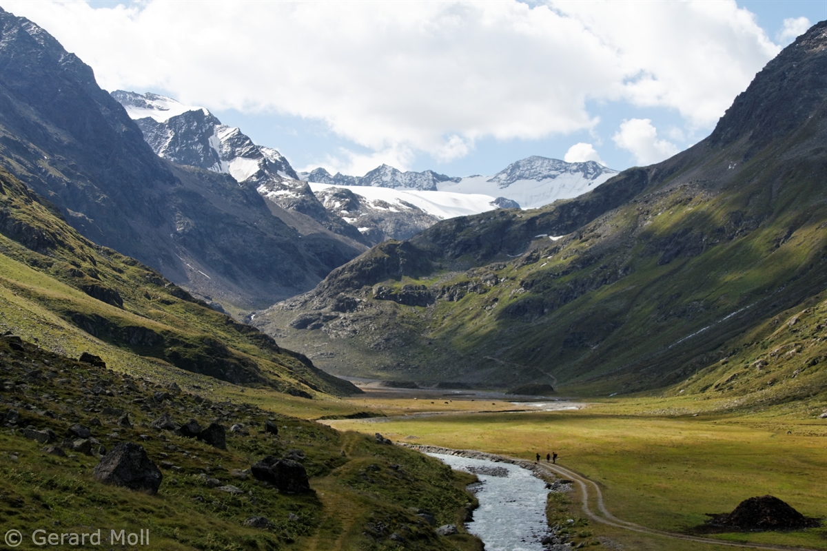Von Längenfeld im Ötztal gelangt man nach Gries (1569 m). Vorbei an der Sulztalalm wandern wir auf einem Fahrweg hinauf zur Amberger Hütte am Fuß des mächtigen Schrankogel (3497 m, zweithöchster Gipfel der Stubaier Alpen).