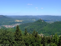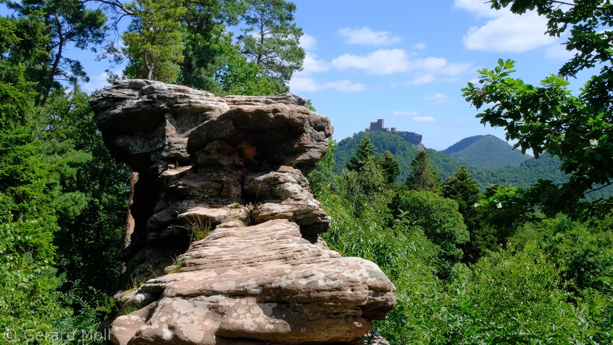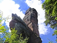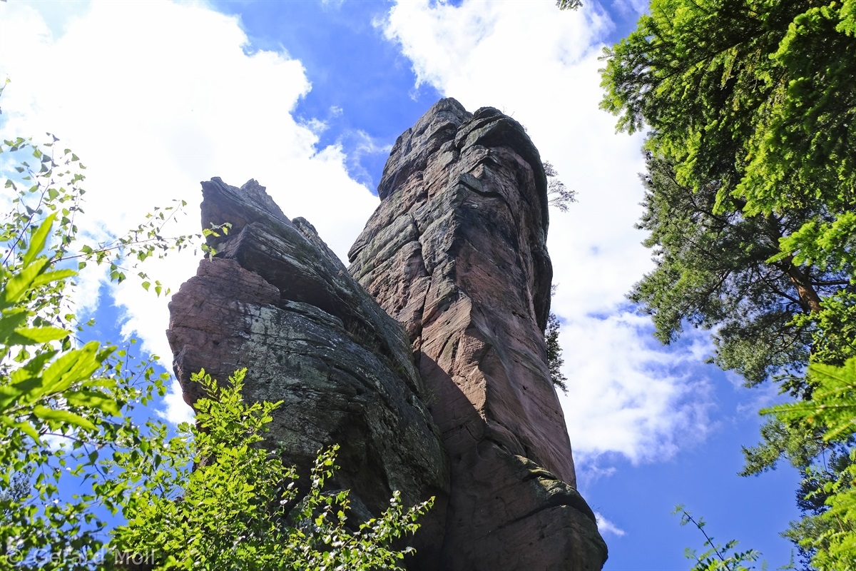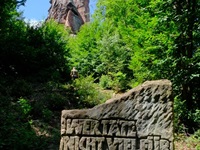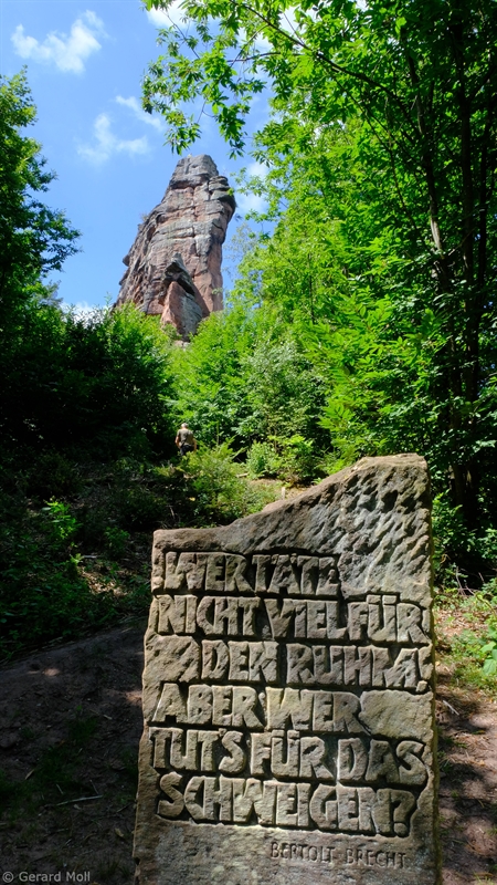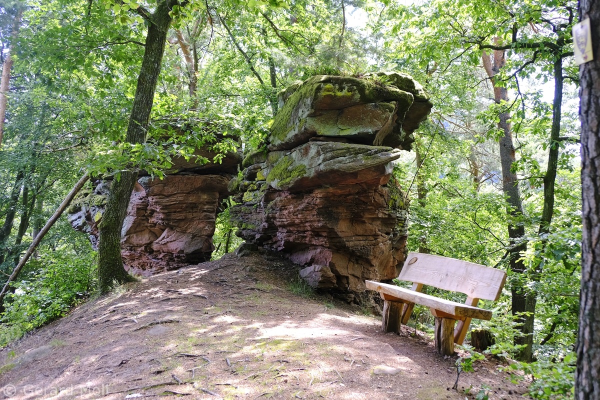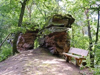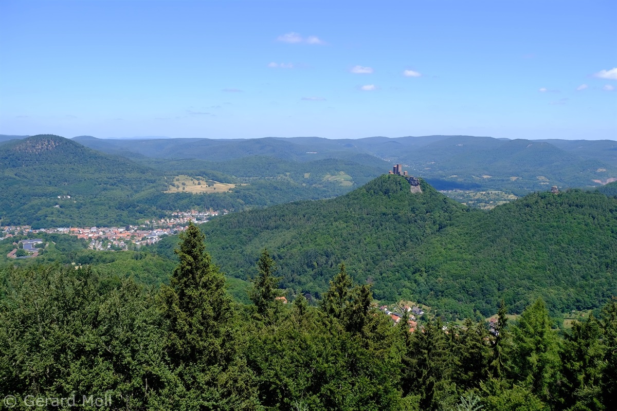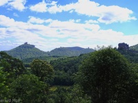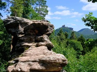 Wir starten in Annweiler am Parkplatz Gotthold in der Zweibrückerstrasse. Wir durchqueren den schönen Ort und steigen auf guten Wegen hinauf zur Naturbegräbnisstätte Trifelsruhe, von wo sich schöne Aussichten auf die Burg Trifels eröffnen. Nach dem Wasgaublick nähern wir uns den Kletterfelsen des Asselsteins, ein kurzer Abstecher bringt uns an den Fuß des Massivs. Direkt dahinter lockt uns die Klettererhütte. Jenseits der Strasse heißt es noch einmal aufsteigen, vorbei an der Rehbergquelle dreht sich der Weg hinauf zum Rehberg mit seinem Aussichtsturm. Von hier hat man einen tollen Ausblick auf die Burgen Trifels, Annebos und Scharfenberg. Dann steigen wir wieder zur Strasse bei der Klettererhütte ab. In weiten Zick-zack-Kurven leitet der Weg in das Bindersbacher Tal. Durch den Kurpark und den Ort kehren wir zum Ausgangspunkt zurück.
