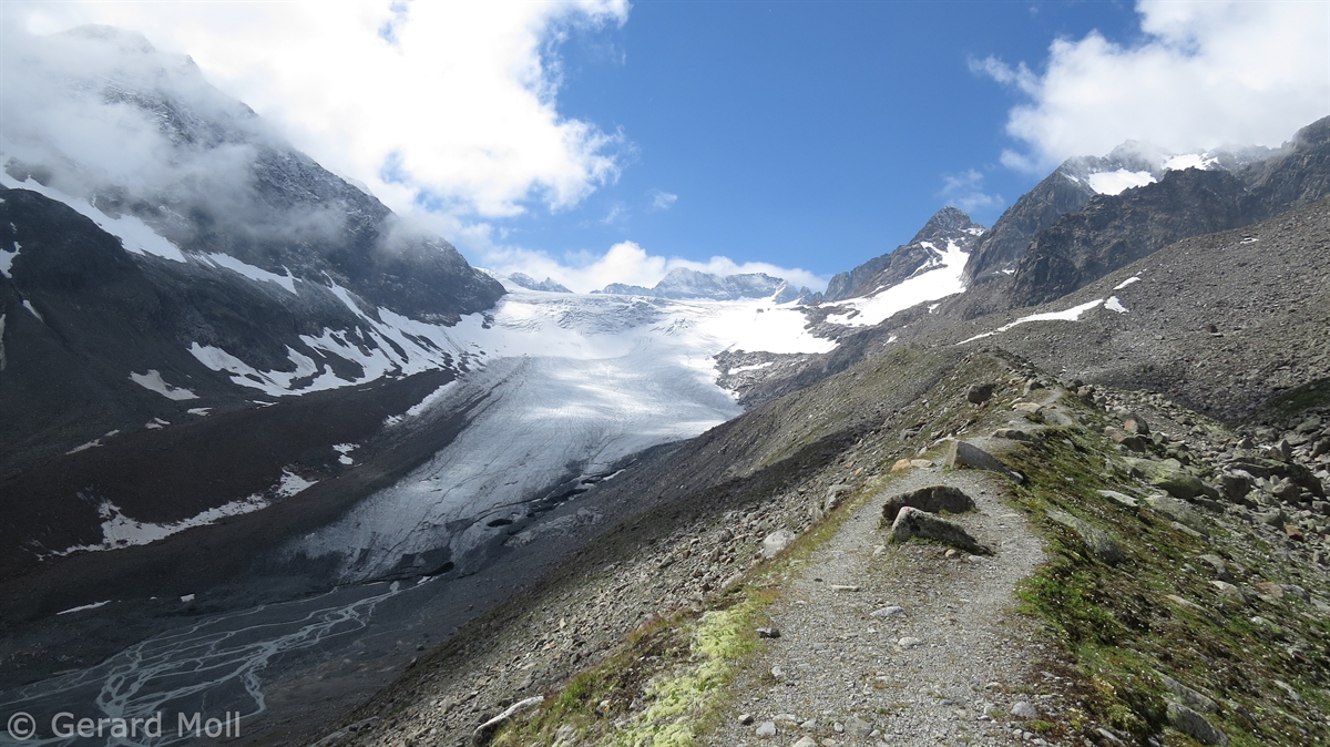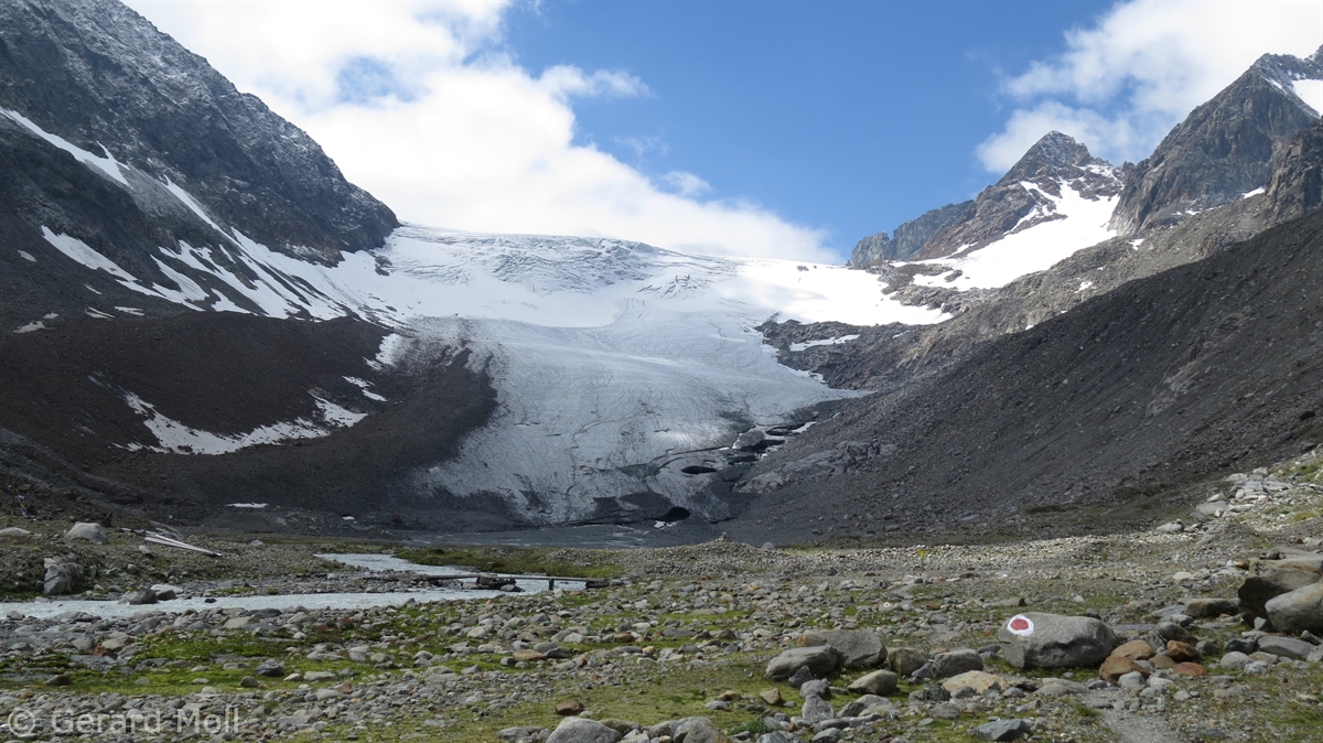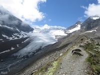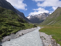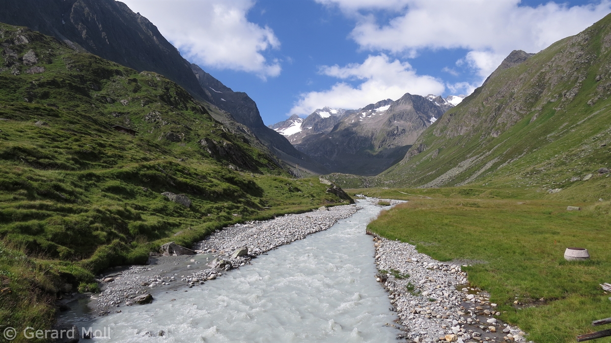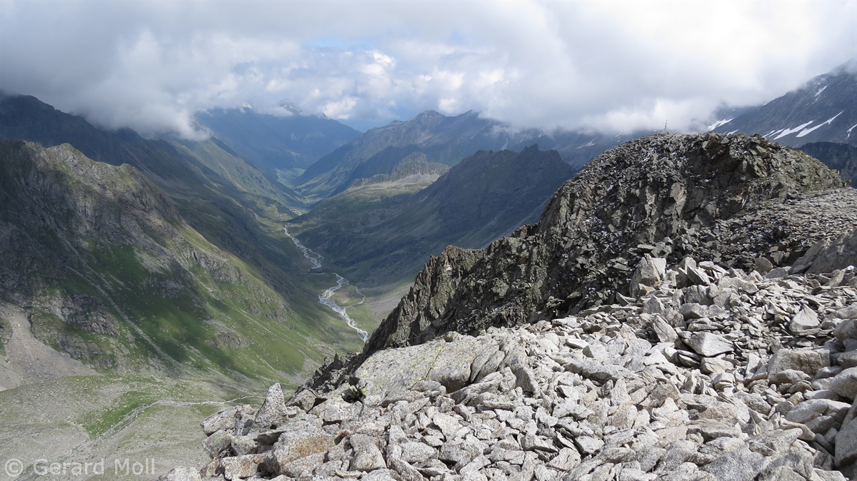 Von Neustift im Stubaital Auffahrt bis zum Parkplatz Oberiss (1750 m). Der Weg führt zuerst steil, dann flacher zur Franz-Senn-Hütte (2147 m). Am Alpeiner Bach entlang geht es dann lange durch das Tal, dann rechts hinauf auf eine Moräne und über Geröll und Blöcke zum Gipfel des Aperen Turms (2986 m).