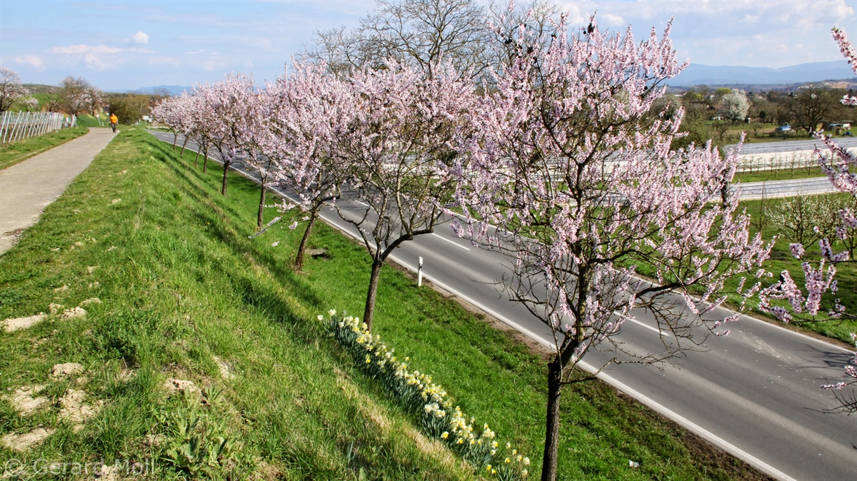 Von Oberbergen (Vogtsburg im Kaiserstuhl) wandern wir durch Weinberge und über den aussichtsreichen Badberg zum Eichelspitzturm. Da es Frühling ist, können wir unterwegs Mandelblüten und Küchenschellen bewundern. An Altvogtsburg vorbei geht es zurück zum Ausgangspunkt. Auf der Rückfahrt besichtigen wir noch den sehenswerten Ort Burkheim und machen einen Abstecher zum Burkheimer Badesee.
