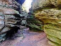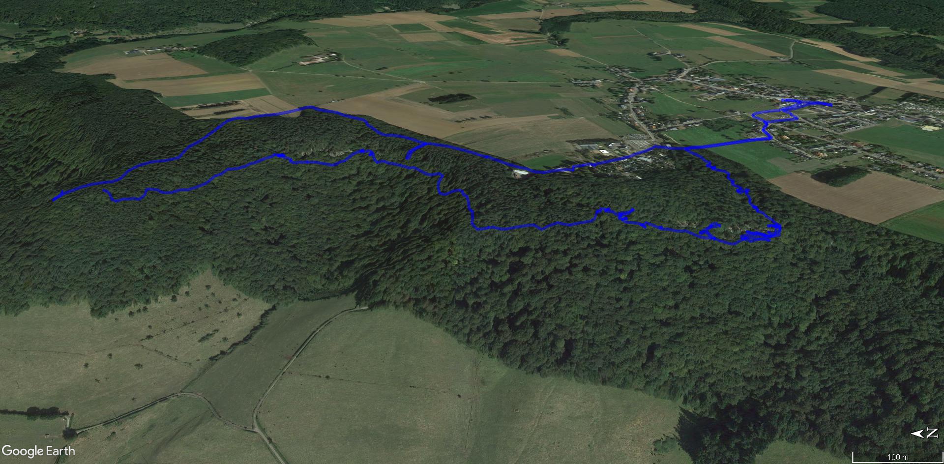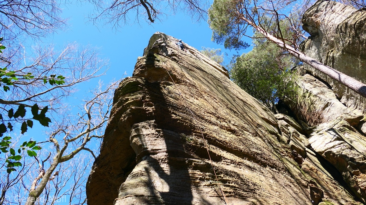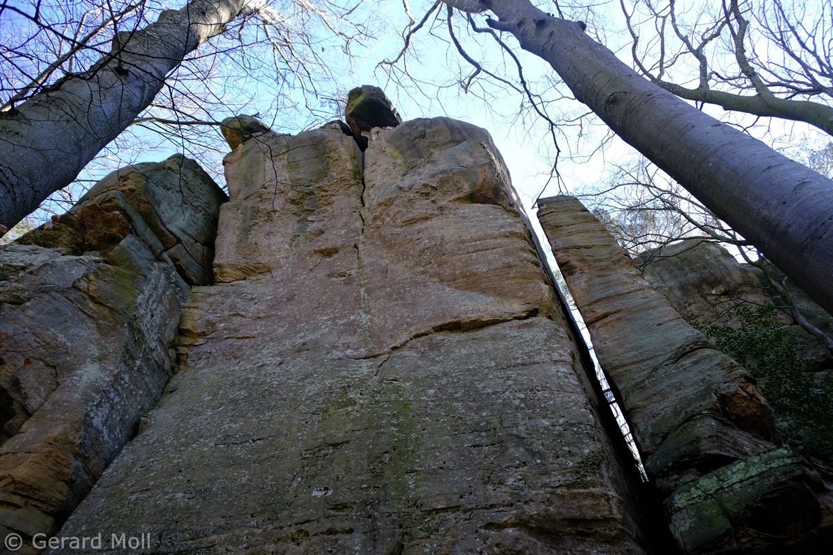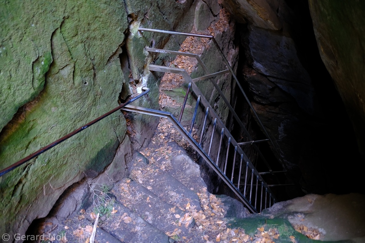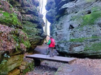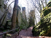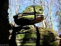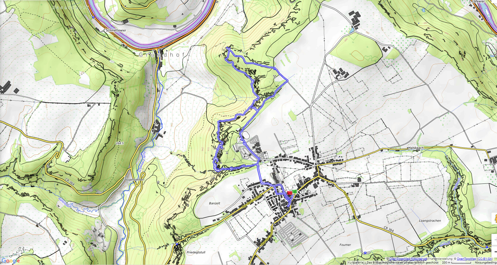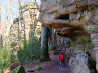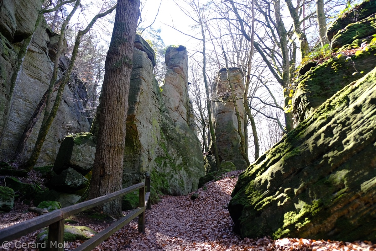 Wir sind im Zentrum Berdorfs gestartet. Der beste Ausgangspunkt ist jedoch der grosse Parkplatz am Freizeitzentrum Martbusch. Der Weg führt über spektakuläre Hängebrücken in das Tal des Roitsbaches und hinunter an den Fuß der beeindruckenden Felswände. Immer wieder locken uns Abstecher zum Roitsbachplateau, zur Teufelsinsel oder zur Räuberhöhle. In den Felswänden der "Wanterbaach" sind fast immer Kletterer zu beobachten. An den "Siwweschlëff" vorbei erreichen wir den Aussichtspunkt "Kasselt". Von hier aus gelangen wir bequem zum Ausgangspunkt zurück.
