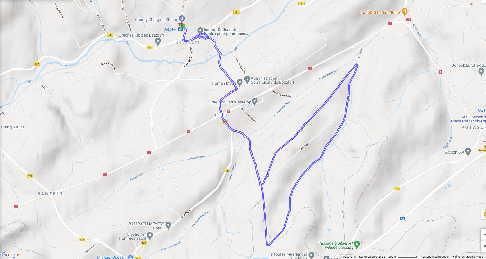 Vom Bahnhof in Betzdorf wandern wir hinauf zu dem kleinen Ort Berg. Auf der anderen Seite der N1 erreichen wir den Fluessweilerbaach und drehen eine Runde durch ein Waldgebiet, ehe wir auf demselben Weg über Berg nach Betzdorf zurückkehren.