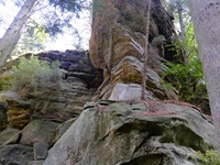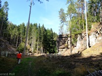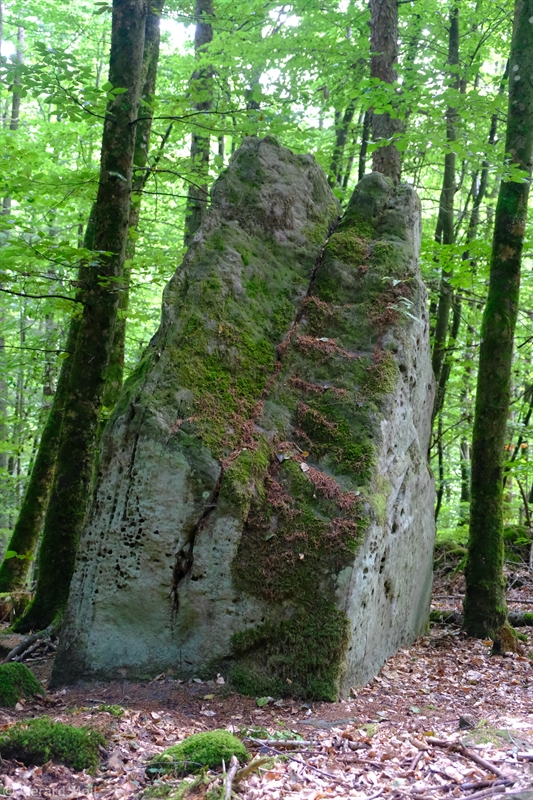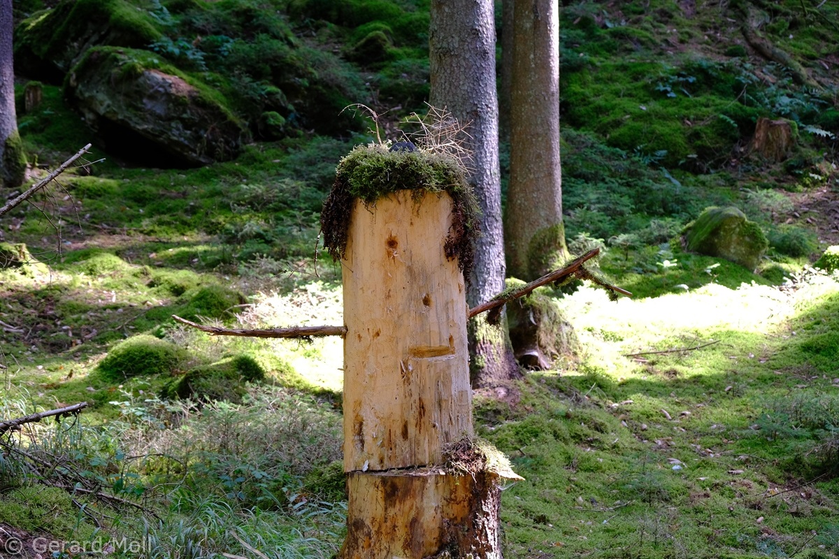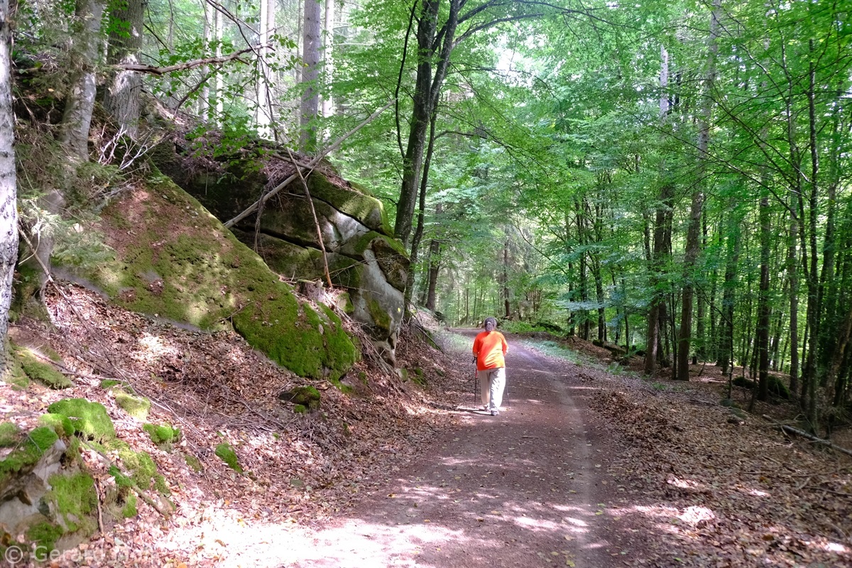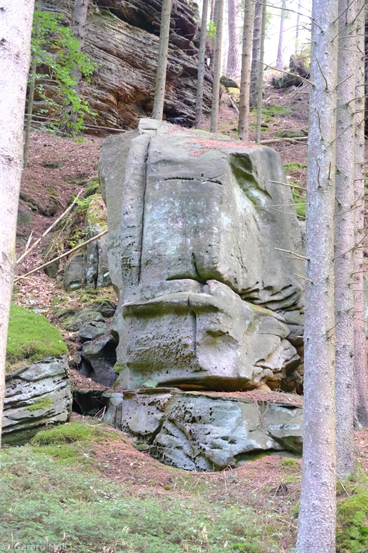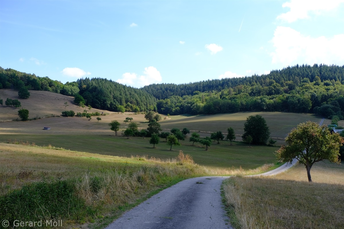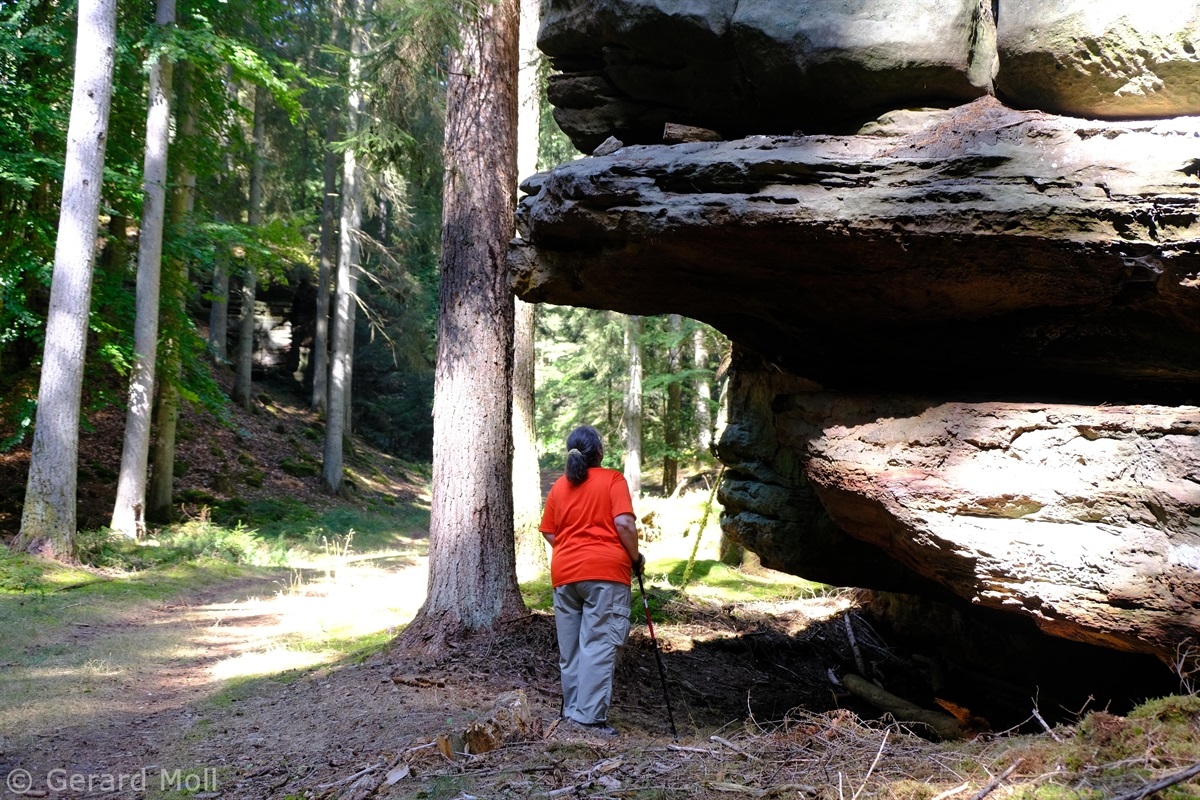 Von Biesdorf gelangen wir über Felder in den Wald unterhalb des Bellkopfes. Wir wandern zu einem Teich und kommen wenig später zur Bischofskapp, einem Felsen in Form einer Bischofs-Mitra. Der Weg führt nun an zahlreichen beeindruckenden Felsen vorbei. Über Felder erreichen wir, vorbei an einer schön gelegenen Quelle, unseren Ausgangspunkt. Der Weg ist nicht mit einer durchgehenden Markierung versehen, folgt aber auf großen Strecken dem Naturpark-Südeifel-Weg Nr. 45. Es empfiehlt sich, die Runde mit Hilfe des GPS-Tracks zu begehen.