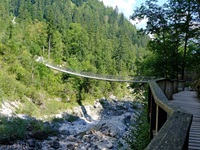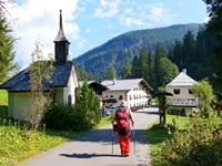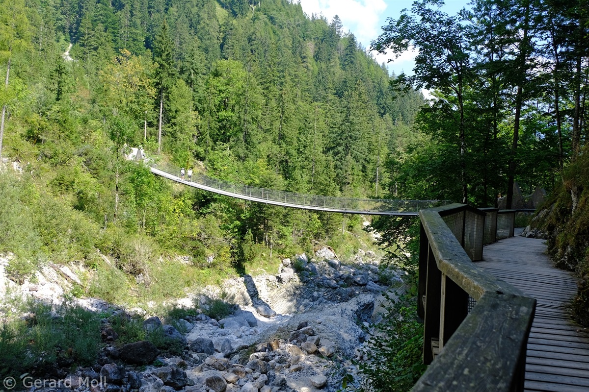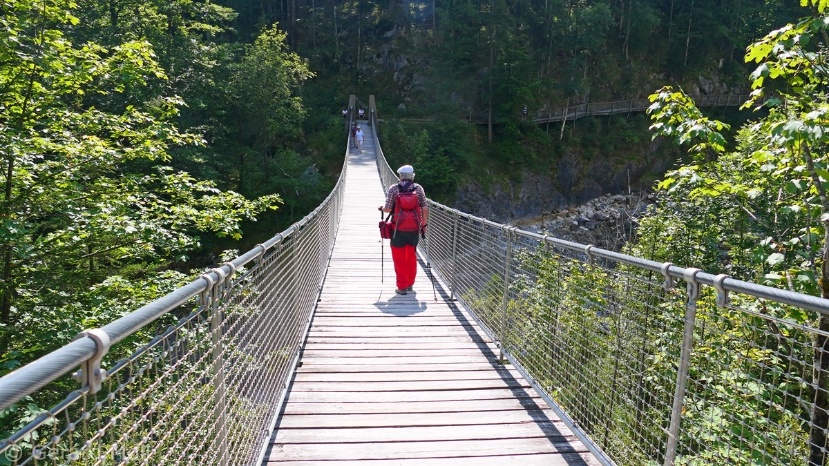 Die unschwierige, aber sehr lohnende Tour haben wir mit einer Fahrt mit dem Wanderbus nach Hirschbichl verkürzt. Von der Haltestelle (1153 m) wandern wir zu Litzlalm (1310 m). Von hier geht es zurück nach Hirschbichl und weiter zur herrlich gelegenen Bindalm (1117 m). Dann geht es durch das Klausbachtal zurück zum Hintersee. Ein besonderes Highlight bietet die 2010 erbaute, 55 Meter lange Hängebrücke über den Klausbach.