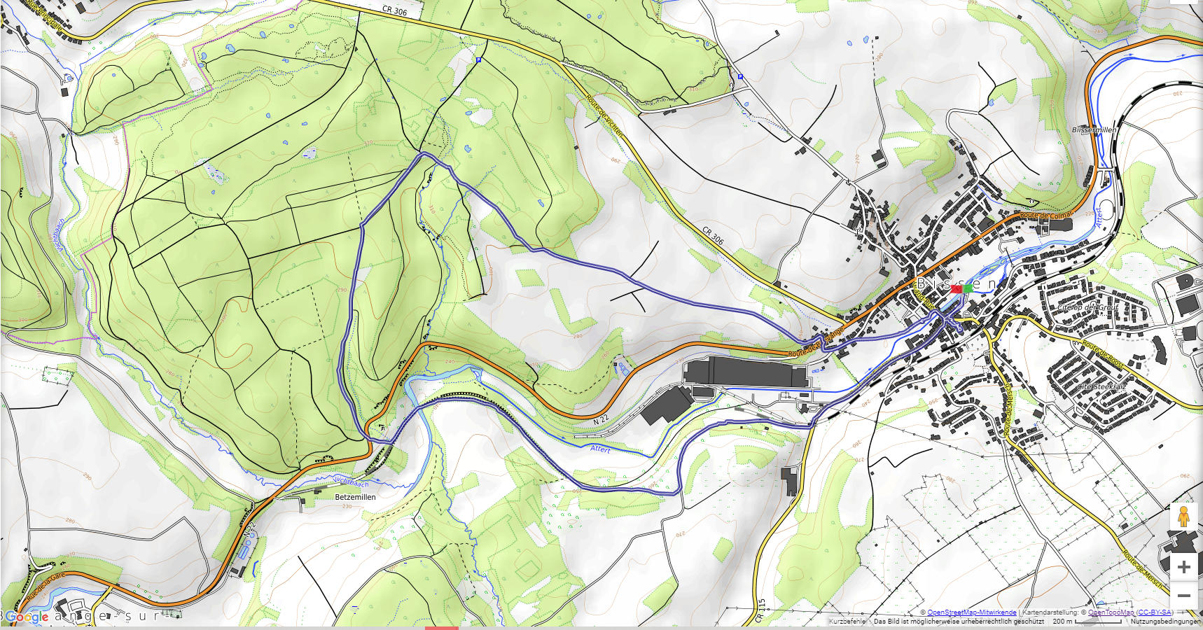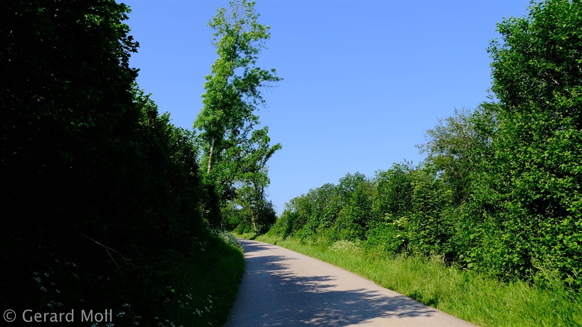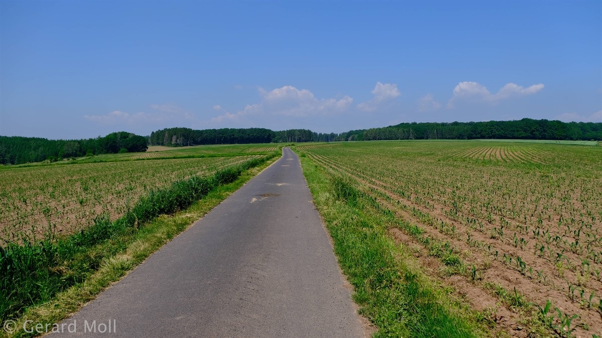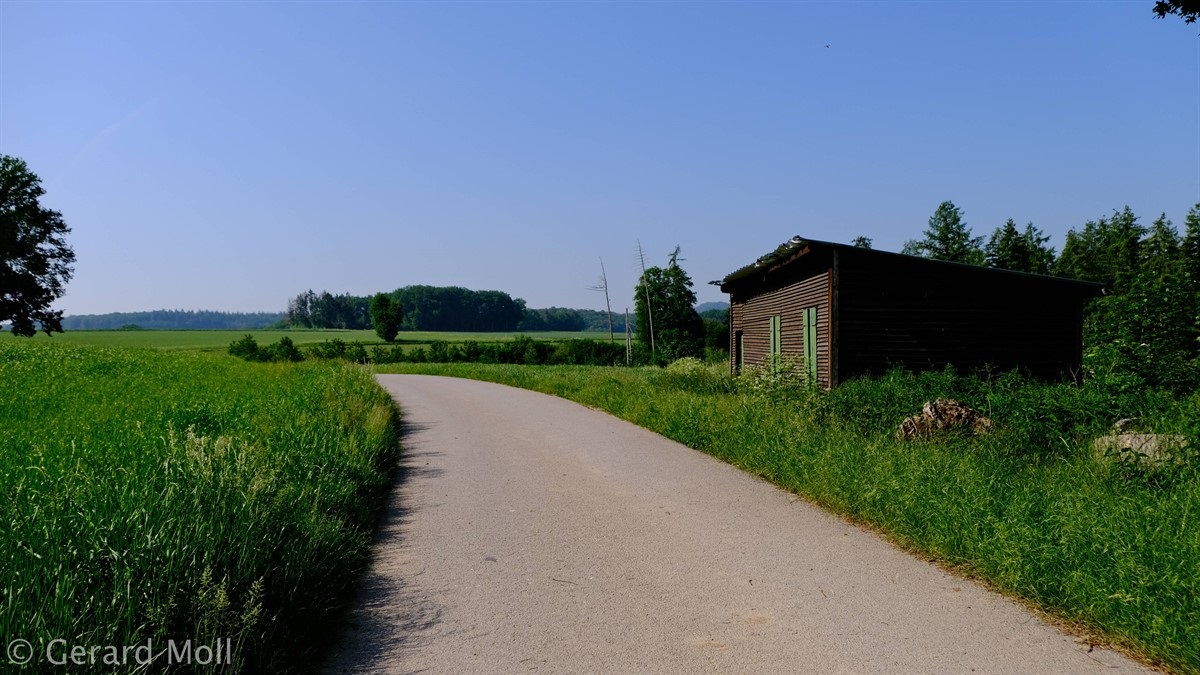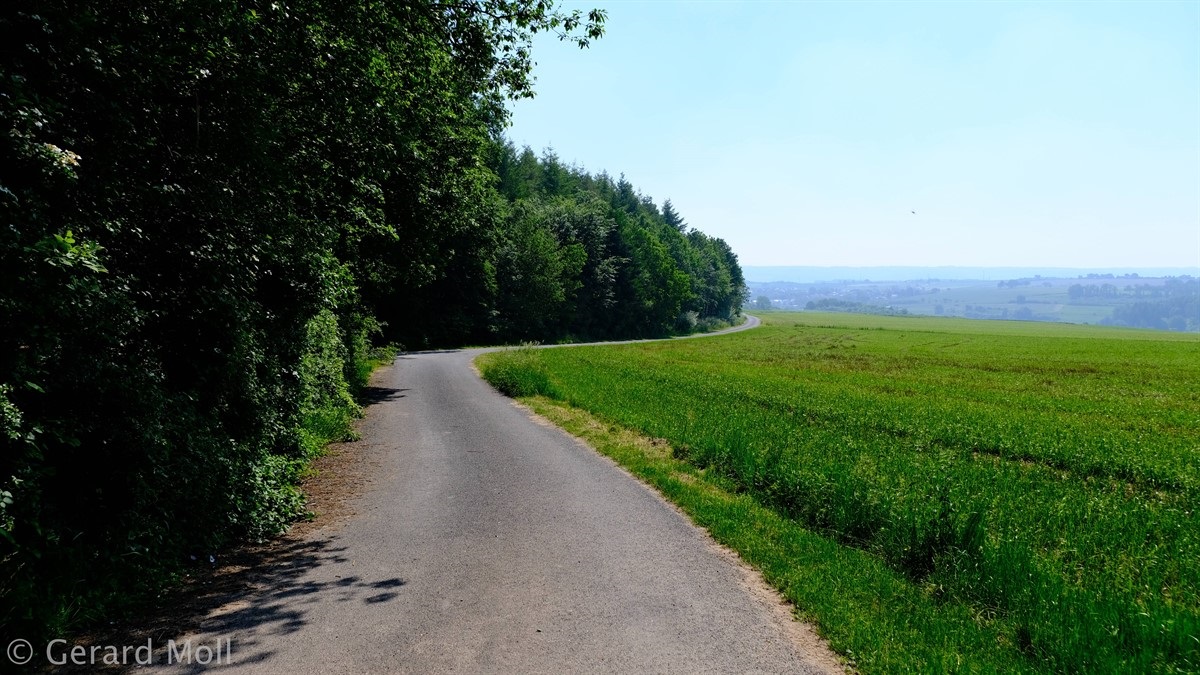 Wir parken im Zentrum von Bissen und folgen zuerst dem CR 115. Dann führt der Weg zunächst ansteigend nach links durch Felder hinauf und dann hinunter in den Wald. Auf der alten Bahntrasse Pétange - Ettelbruck war der Weg etwas zugewachsen. Nach der Überquerung der N22 kommen wir auf breite Waldwege, dann geht es durch die Felder des Peizenecker zurück nach Bissen.