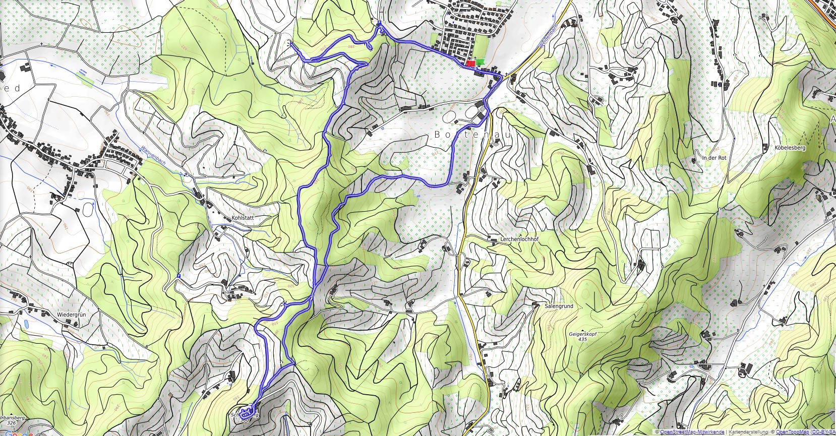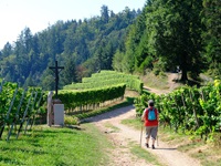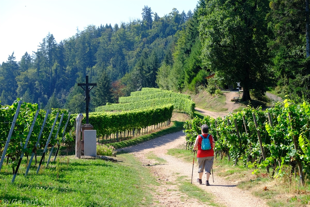 Wir wandern vom Parkplatz am Friedhof in Bottenau an der Wendelin-Kapelle vorbei zum Münsterblick mit herrlichem Ausblick auf das Rheintal und Straßburg. Weiter geht es durch die Weinberge, vorbei an der Teufelskapelle, dem Schwarzen Kreuz und der Stollenwaldhütte mit Getränkeangebot zum Schloss Staufenberg. Durch Wald und Weinberge kehren wir zum Ausgangspunkt zurück.