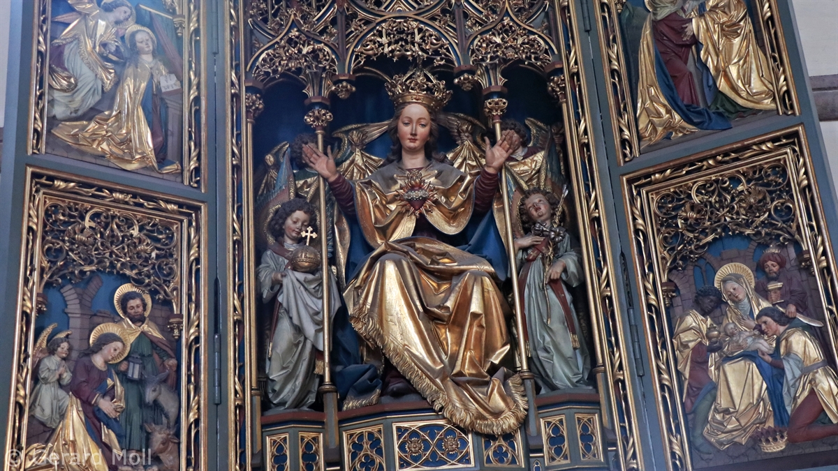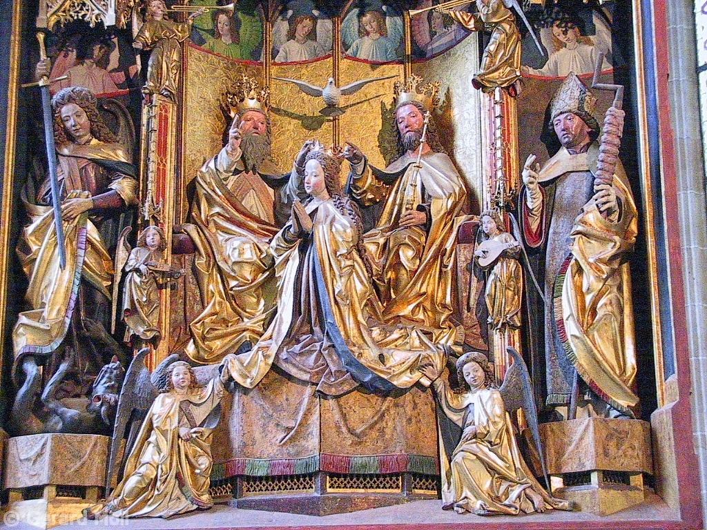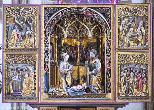 Bild in Lightbox öffnen (open image in lightbox). Die im 14. Jahrhundert entstandene Franziskanerkirche musste 1947 nach Bombardierung neu aufgebaut werden. Herrlicher spätgotischer Flügelaltar  von Hans Klocker.