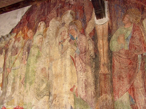 Bild in Lightbox öffnen (open image in lightbox). Die Deutschhauskirche St. Georg (um 1400)  bietet an der Außenwand ein Kreuzigungsfresko, das zu Beginn des 15. Jahrhunderts von einem Veroneser Meister gemalt wurde.