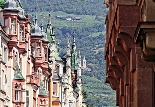 Nahe dem Zusammenfluss von Etsch und Eisack liegt die Landeshauptstadt Bozen mit ihrer sehenswerten Altstadt.