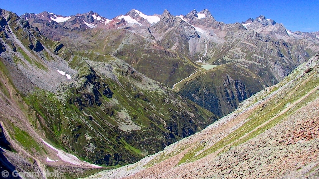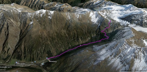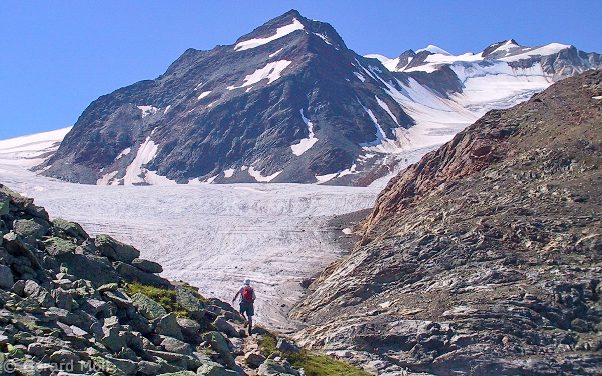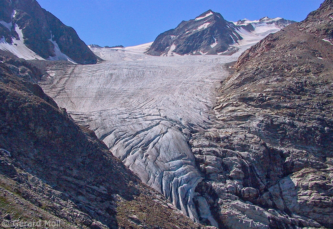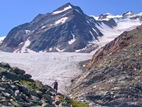 Von Mandarfen im Pitztal (1717 m) führt ein guter Weg am Gletscherstübele vorbei, dann neben einem Wasserfall hinauf zur Braunschweiger Hütte (2758 m).