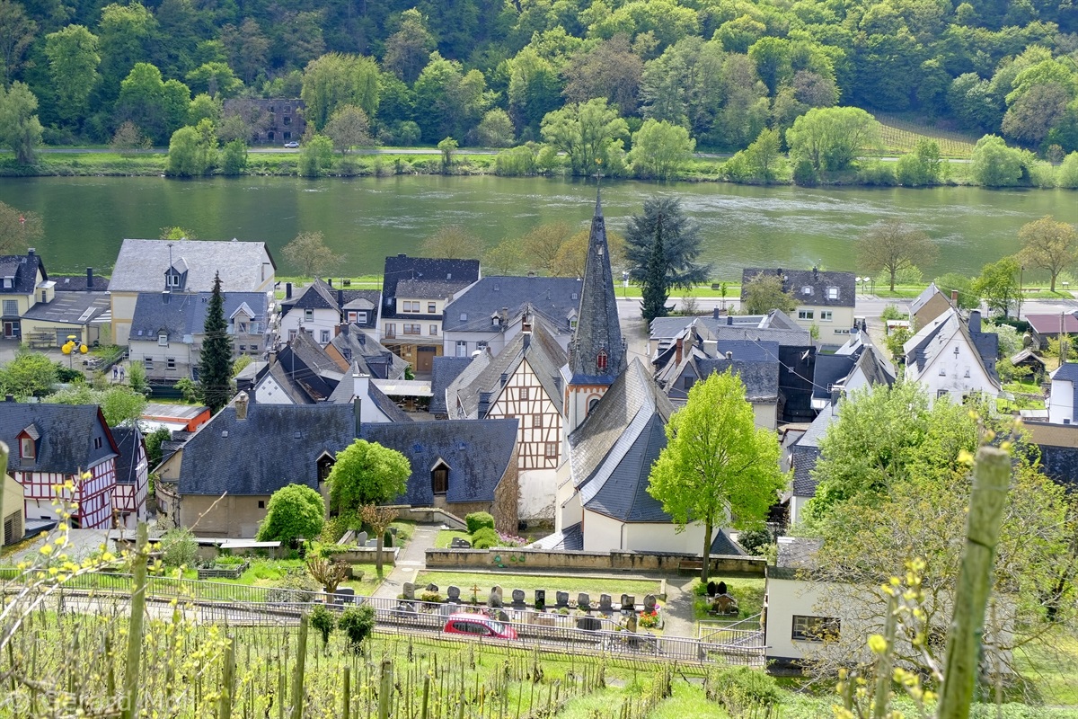 Wir wandern von Briedern auf dem Kulturweg Steinreichskäpp vorbei an Steinskulpturen Mesenicher Bürger durch die Weinlage Mesenicher Goldgrübchen bis kurz vor Senheim. Unser Rückweg führt uns durch den historischen Ortskern von Mesenich und am Moselufer entlang zurück nach Briedern.