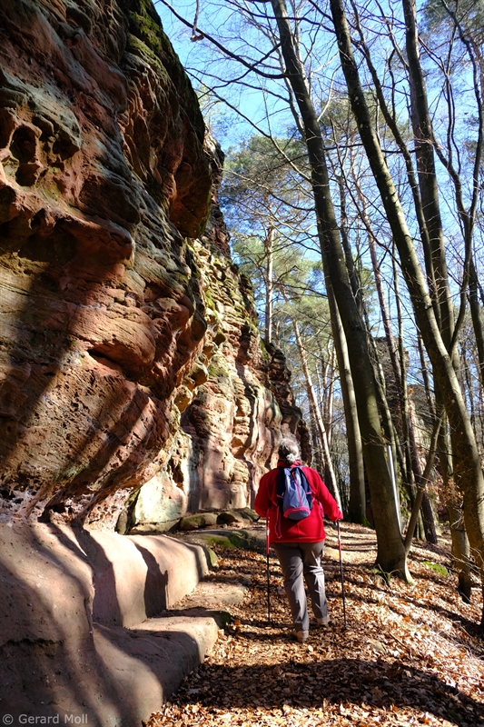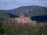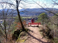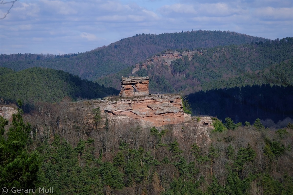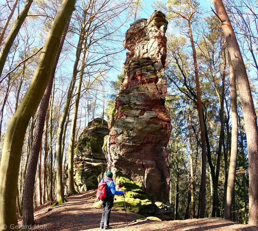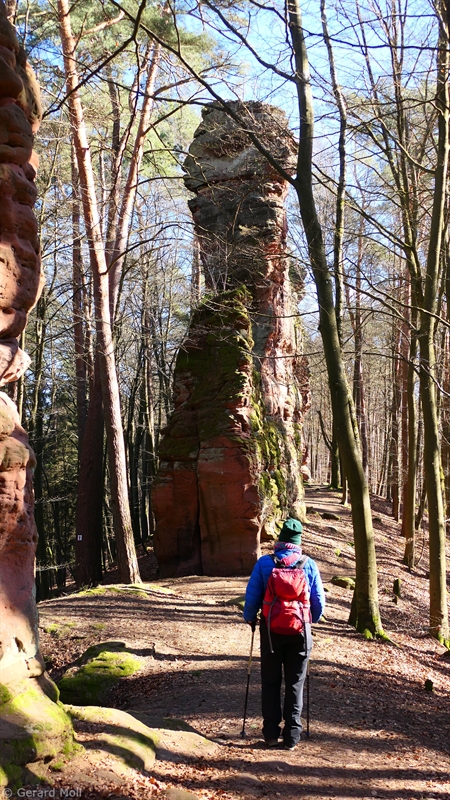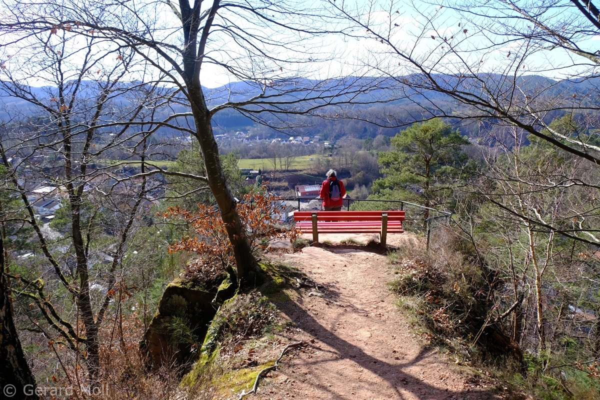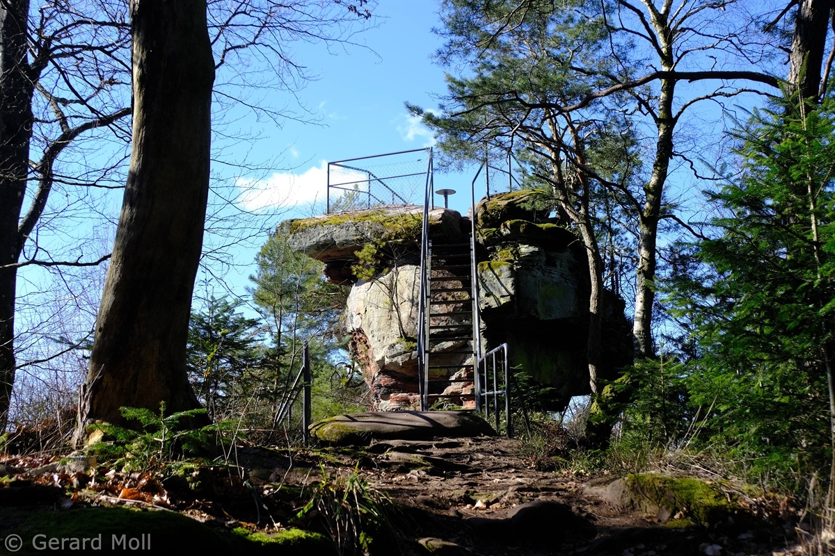 Wir starten am Parkplatz des Friedhofs in Bruchweiler-Bärenbach. Der Weg führt in südlicher Richtung bis an den Rand von Bundenthal, dann geht es hinauf zu den Fladensteinen. Fast 500 Meter wandern wir am Fusse der bis zu 52 Meter hohen Felsgruppe entlang. Der Weiterweg führt uns hinauf zur Aussichtskanzel auf dem Gipfel des 491 m hohen Jüngstberges. Beim Abstieg lohnt sich ein kleiner Abstecher zum Drachenfelsblick sowie zum Schuhfels mit Blick auf Bruchweiler-Bärenbach.