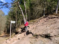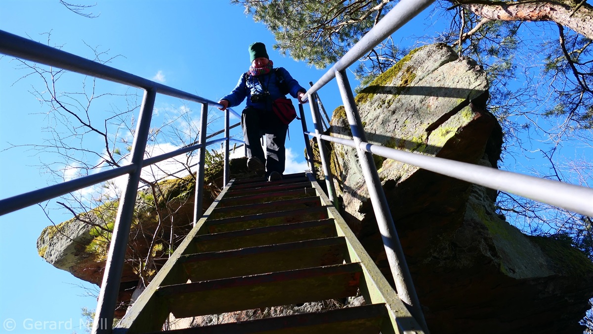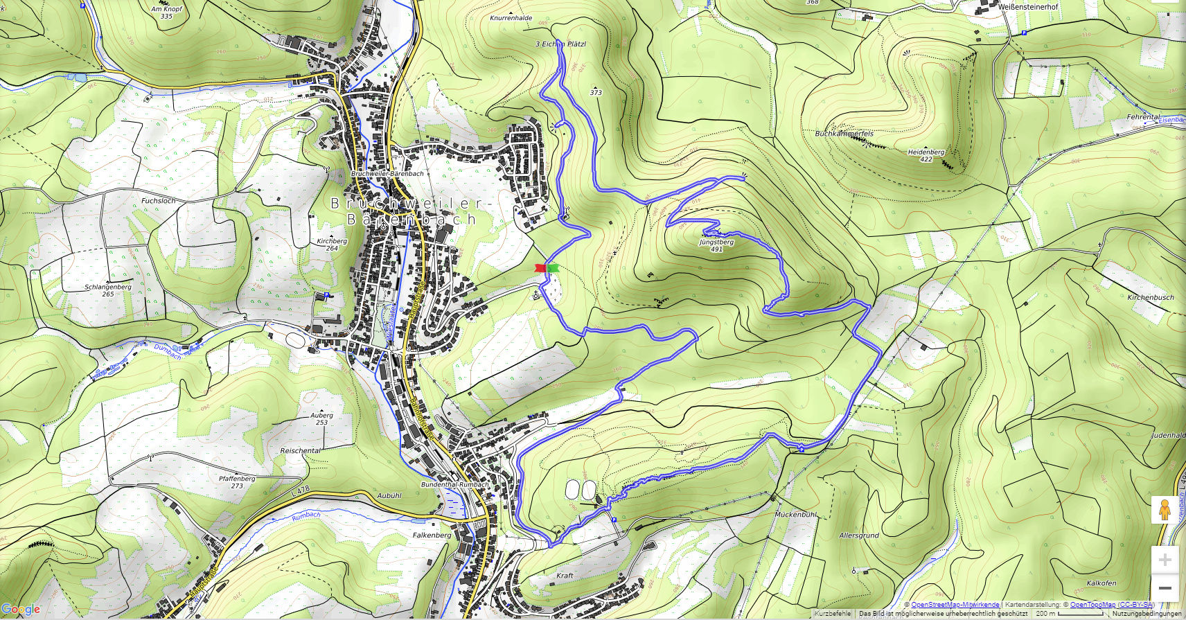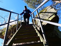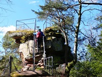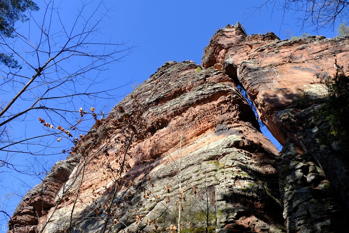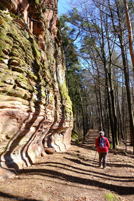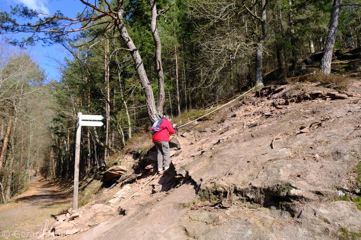 Wir starten am Parkplatz des Friedhofs in Bruchweiler-Bärenbach. Der Weg führt in südlicher Richtung bis an den Rand von Bundenthal, dann geht es hinauf zu den Fladensteinen. Fast 500 Meter wandern wir am Fusse der bis zu 52 Meter hohen Felsgruppe entlang. Der Weiterweg führt uns hinauf zur Aussichtskanzel auf dem Gipfel des 491 m hohen Jüngstberges. Beim Abstieg lohnt sich ein kleiner Abstecher zum Drachenfelsblick sowie zum Schuhfels mit Blick auf Bruchweiler-Bärenbach.