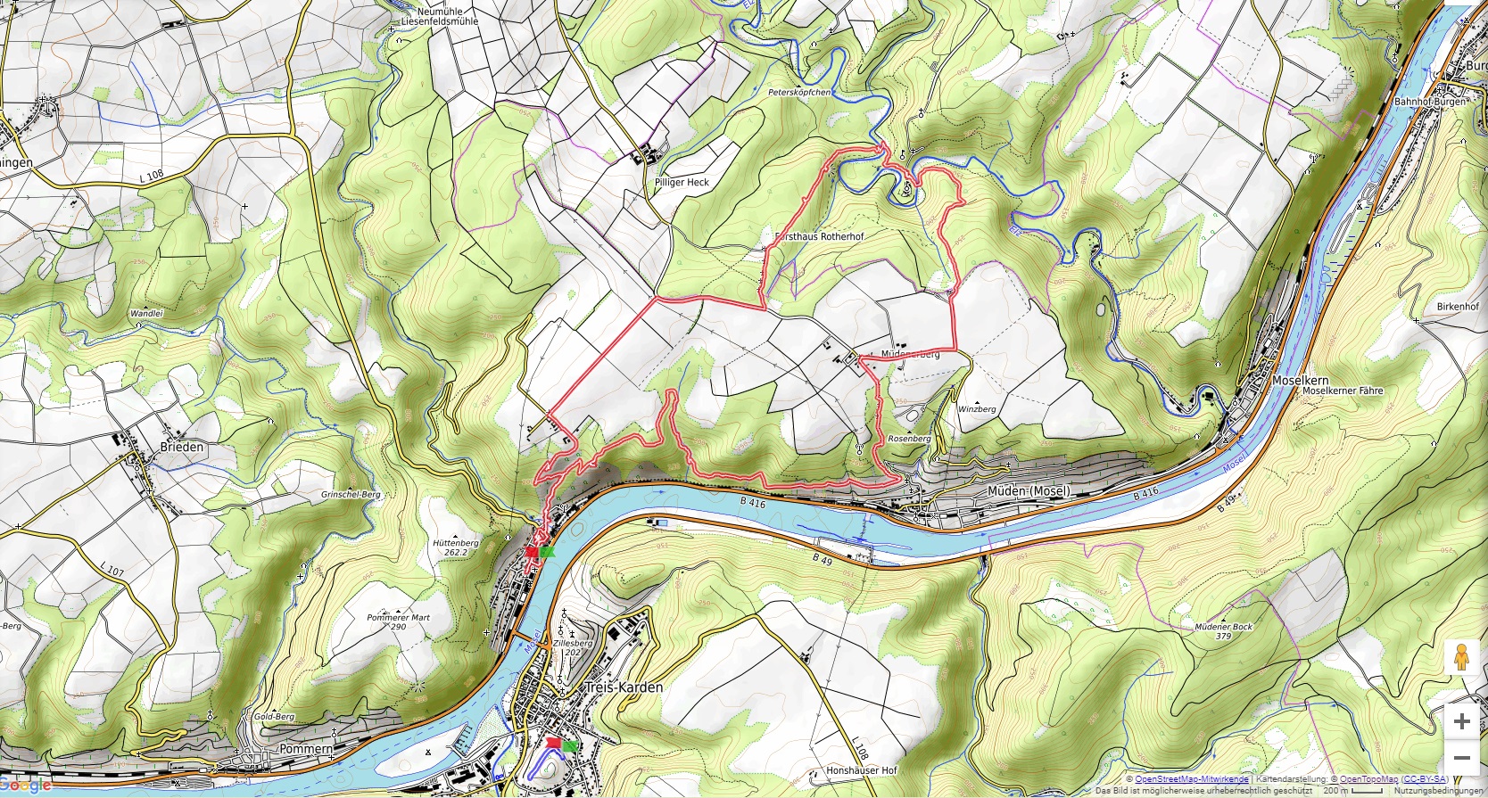 Von Karden gehen wir über den Buchsbaumweg nach Müden und hinauf nach Müdenerberg. Über die Hochfläche gelangen wir zur Burg Eltz und von dort über die Windhäuser Höfe zurück nach Karden.
