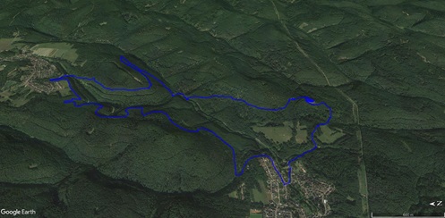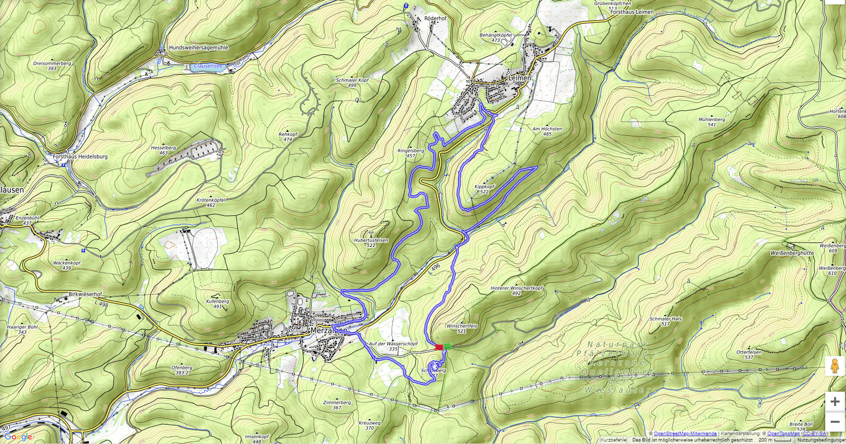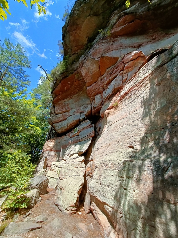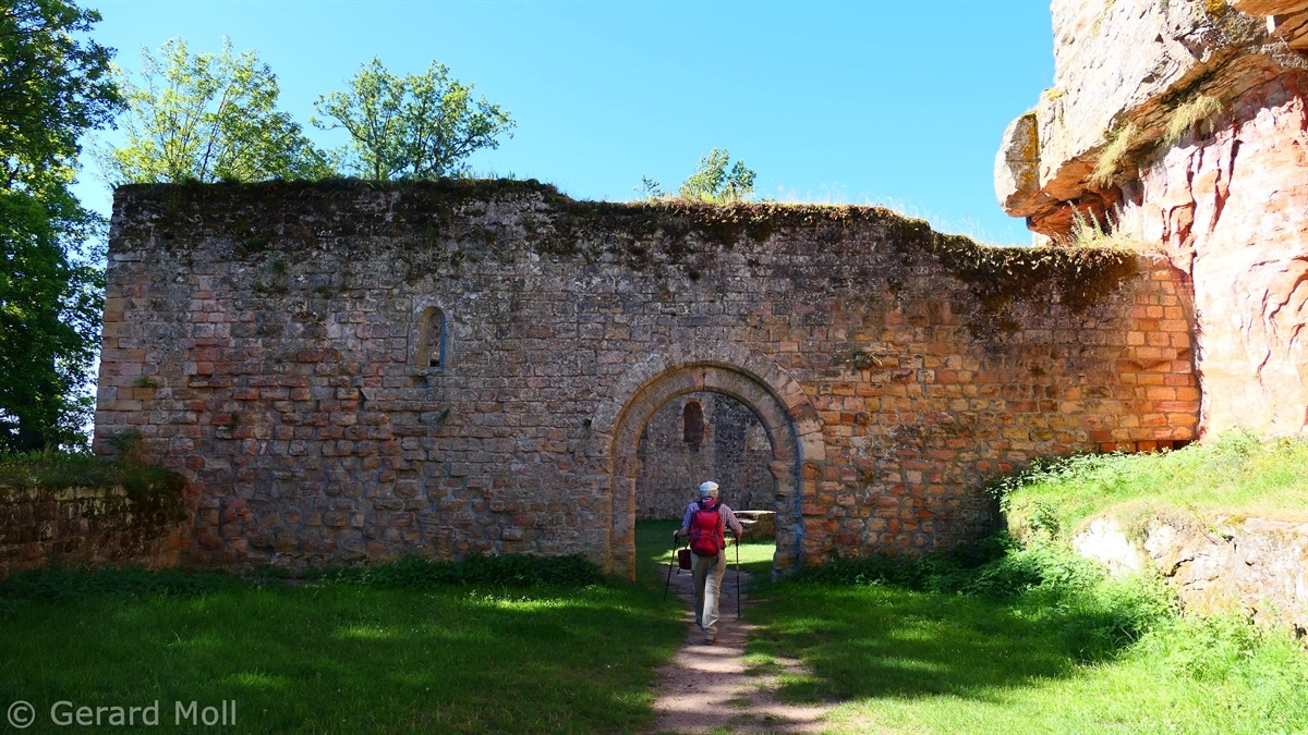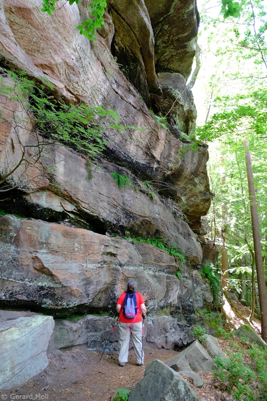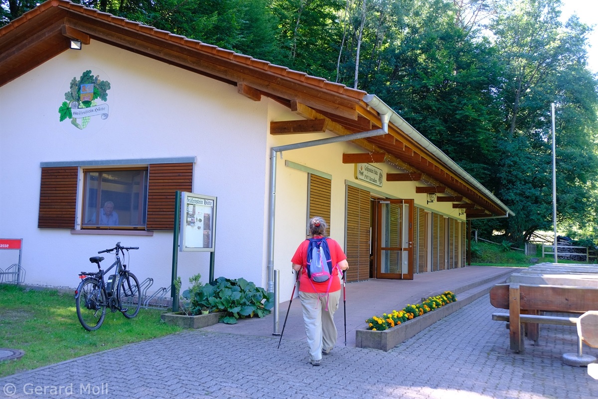 Von Merzalben sind wir zum Parkplatz "Schäferei" hochgefahren und haben sofort den etwas steileren Anstieg zur Burgruine Gräfenstein in Angriff genommen. Nach der Besichtigung der sehr sehenswerten, auf das 12. Jahrhundert zurückgehenden, Burganlage erfolgt der Abstieg zur Gräfensteinhütte des Pfälzerwald-Vereins und nach Merzalben. Auf der anderen Talseite war der Weg wegen Bauarbeiten gesperrt und wir sind der ausgeschilderten Umleitung gefolgt und haben den Ortstrand von Leimen erreicht. Nach einer kurzen Rast auf der Ruhebank am Ortseingang (nur für Geübte) sind wir dem Pfad nach Süden gefolgt. An zahlreichen Felsen vorbei haben wir den Felsdurchgang des Geissenschlupfs erreicht. Dann ging es hinunter zur Karlsmühle und noch einmal hoch hinauf zum Parkplatz "Schäferei".