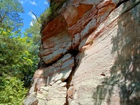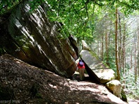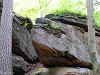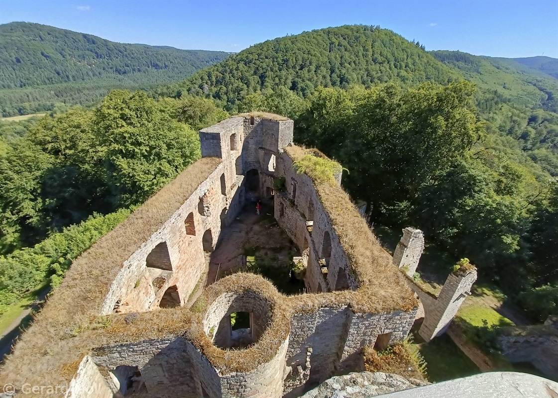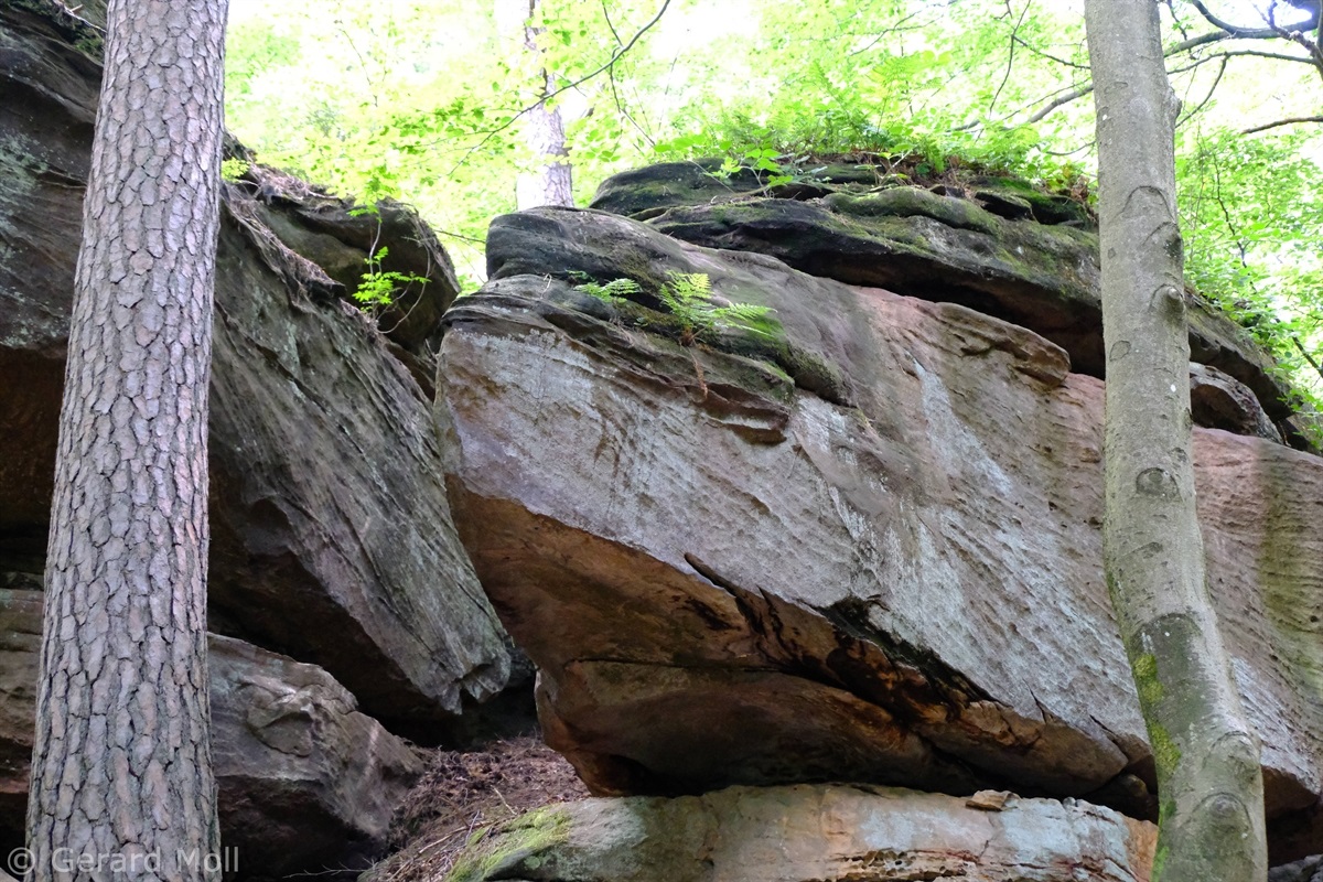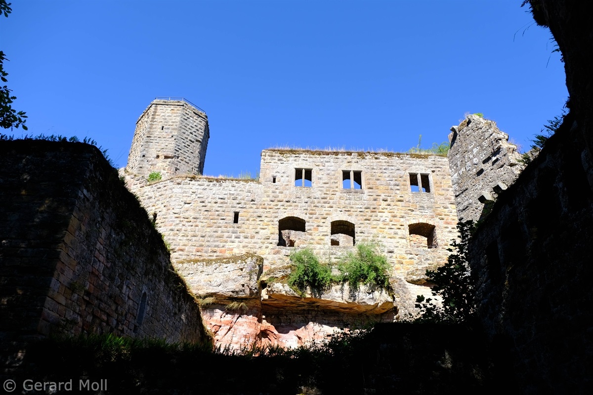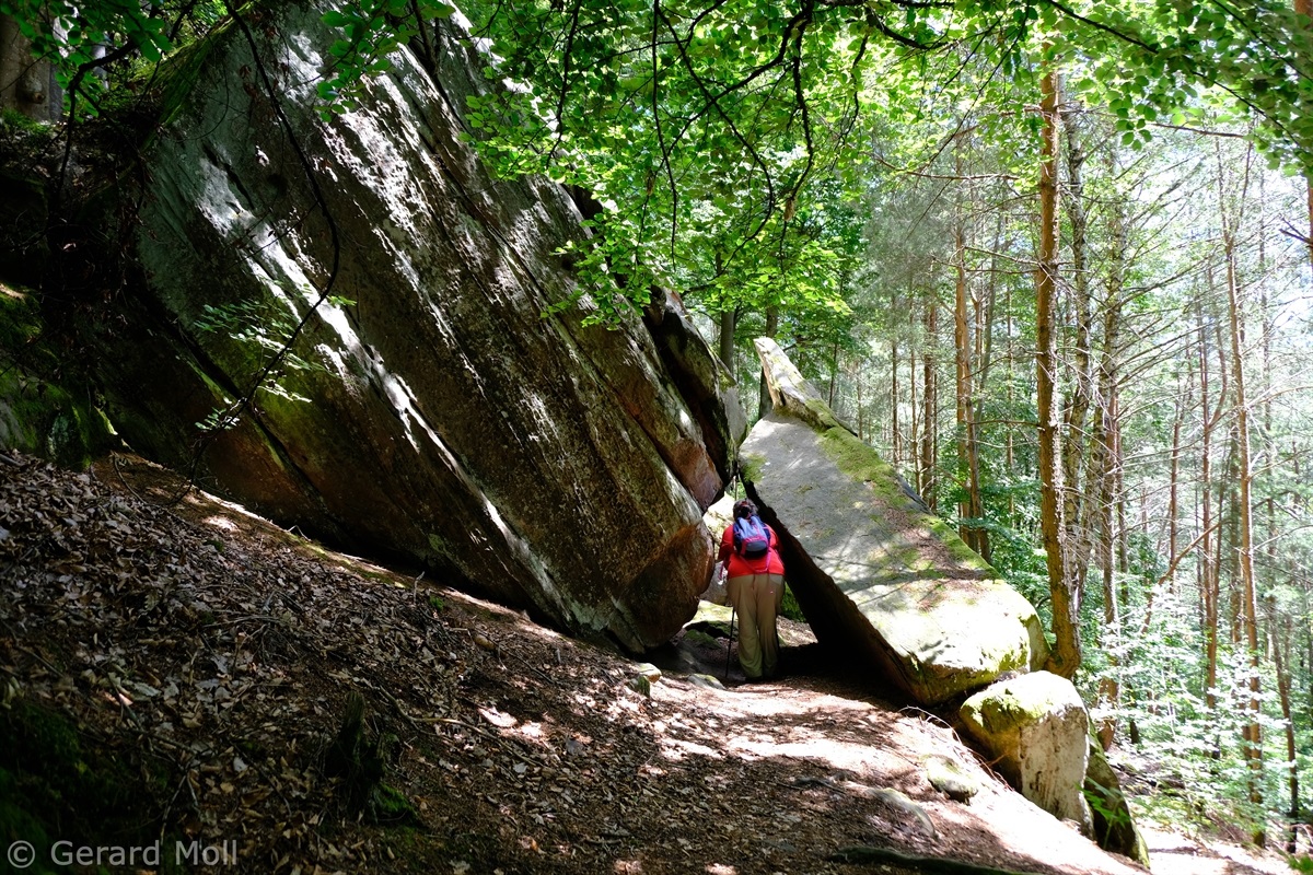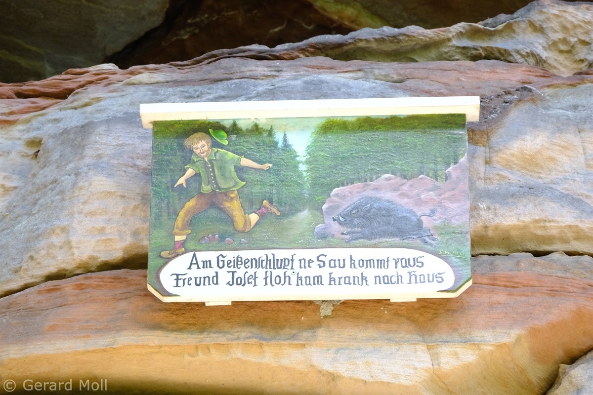 Von Merzalben sind wir zum Parkplatz "Schäferei" hochgefahren und haben sofort den etwas steileren Anstieg zur Burgruine Gräfenstein in Angriff genommen. Nach der Besichtigung der sehr sehenswerten, auf das 12. Jahrhundert zurückgehenden, Burganlage erfolgt der Abstieg zur Gräfensteinhütte des Pfälzerwald-Vereins und nach Merzalben. Auf der anderen Talseite war der Weg wegen Bauarbeiten gesperrt und wir sind der ausgeschilderten Umleitung gefolgt und haben den Ortstrand von Leimen erreicht. Nach einer kurzen Rast auf der Ruhebank am Ortseingang (nur für Geübte) sind wir dem Pfad nach Süden gefolgt. An zahlreichen Felsen vorbei haben wir den Felsdurchgang des Geissenschlupfs erreicht. Dann ging es hinunter zur Karlsmühle und noch einmal hoch hinauf zum Parkplatz "Schäferei".