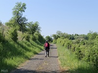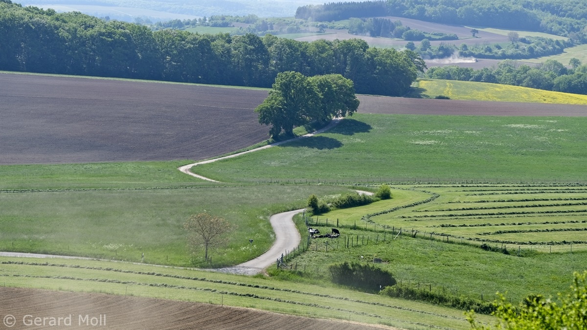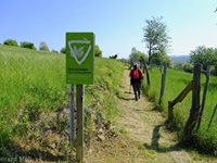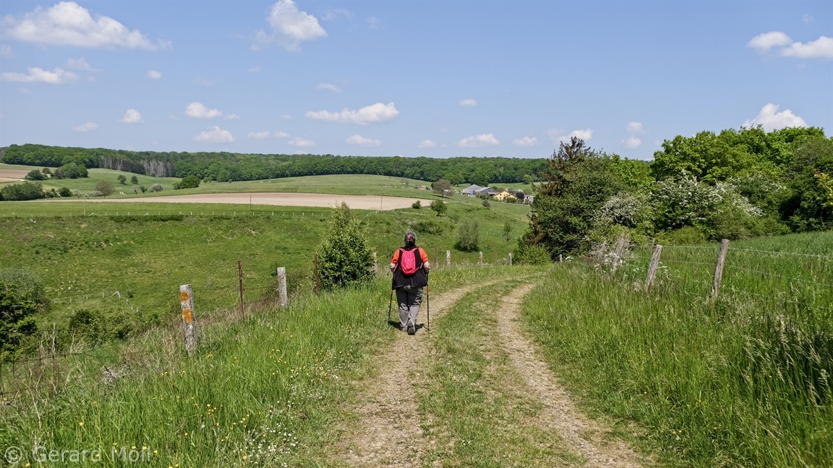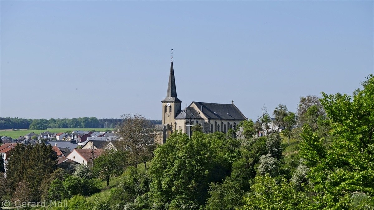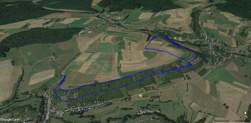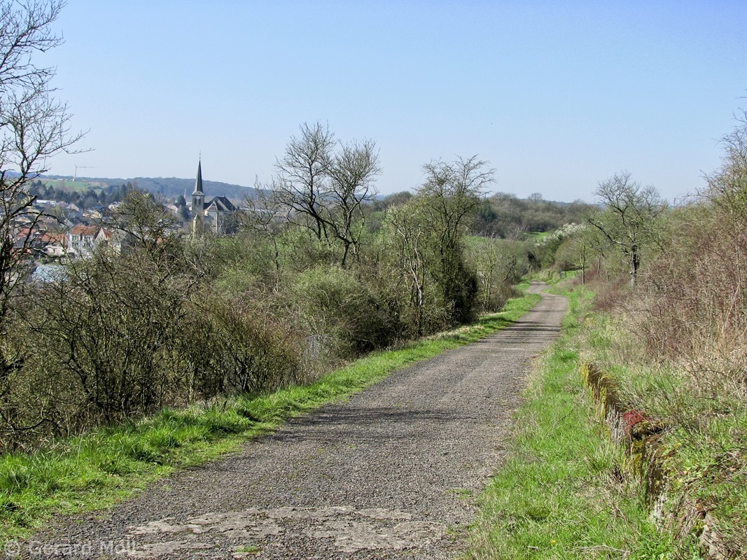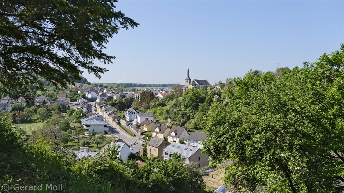 Wir starten bei einem kleinen Parkplatz an der Strasse zwischen Canach und Beyren und folgen dem aussichtsreichen Weg, der mit schönen Ausblicken auf Canach an restaurierten Trockenmauern vorbei führt. Nach einem kurzen, steilen Anstieg fädeln wir in den Trëppelpad Beemchesfëls ein, der nach Gostingen führt. Gut markiert bringt uns eine Schleife zurück zu unserer Abzweigung. Hier waren auf der Wéngertsbierg-Tour keine Markierungen zu finden. Durch alte Weinberge und über ein Feld kehren wir zum Ausgangspunkt zurück.