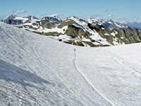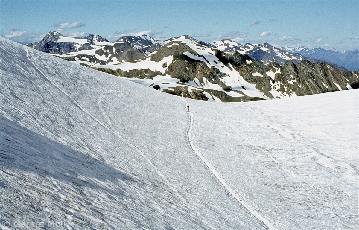 Hochalpine Gletschertour von der Casatihütte. Die Casatihütte erreicht man entweder über Gletscher von der Schaubachhütte oder aus dem Martelltal, oder gletscherfrei von Süden von der Pizzinihütte.