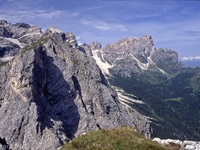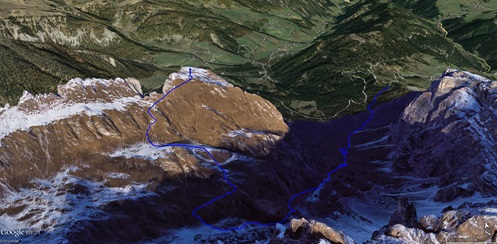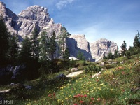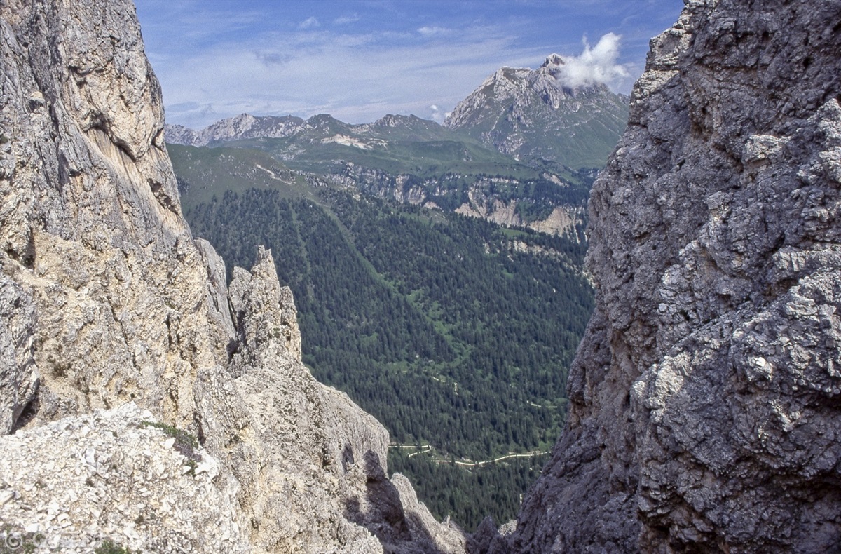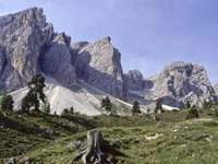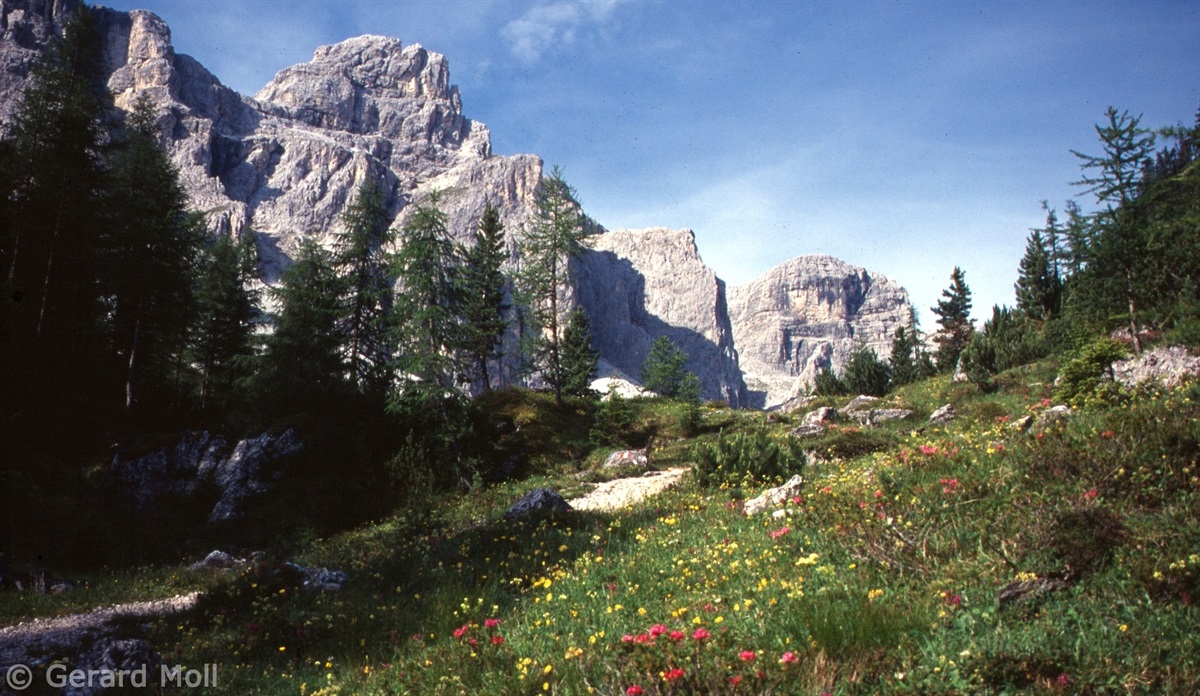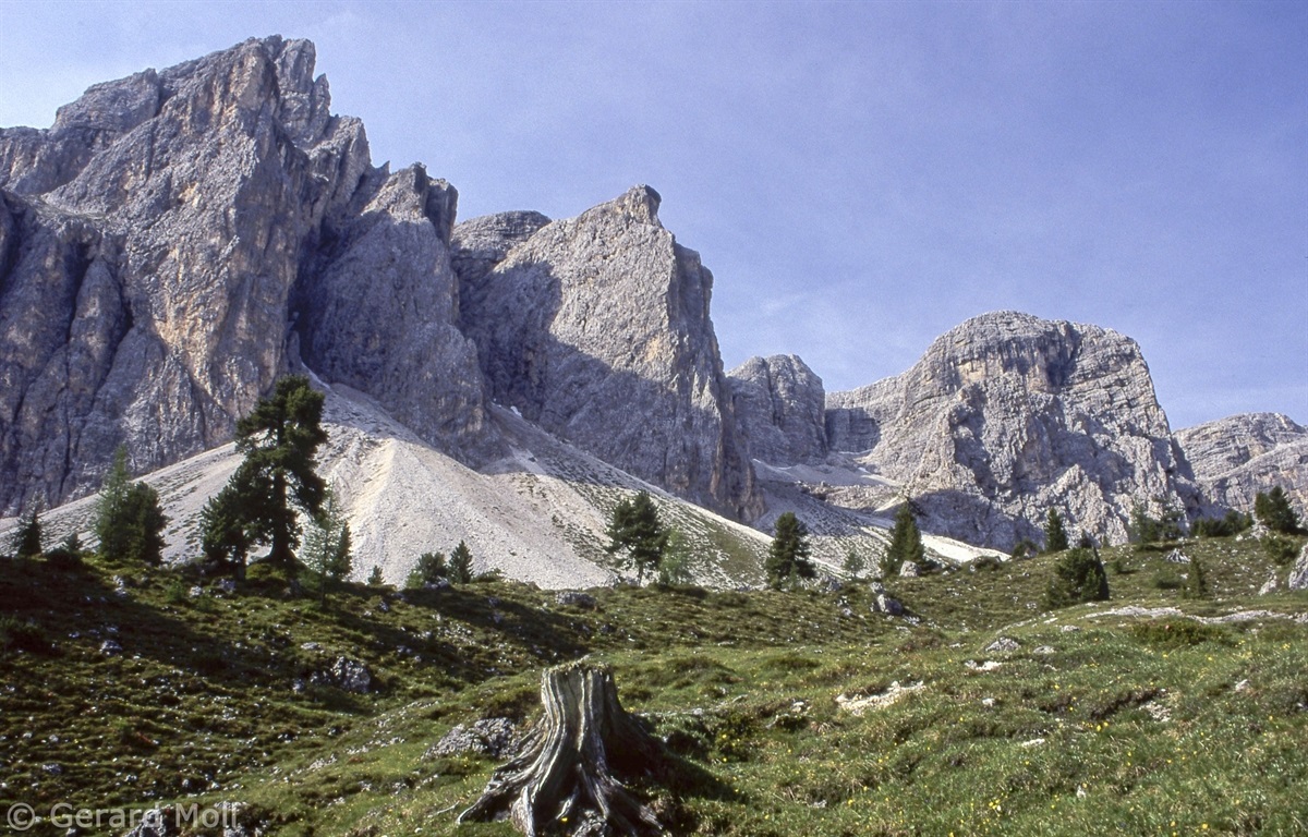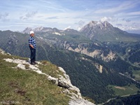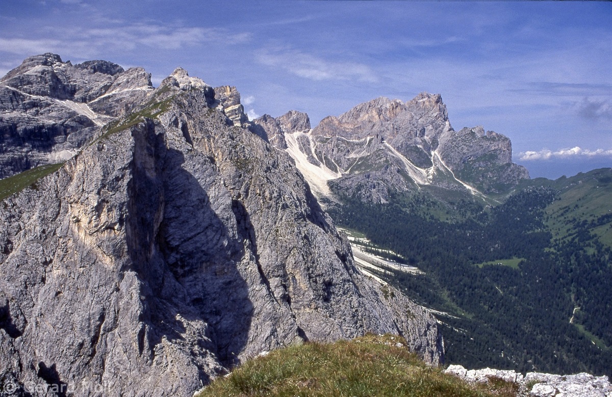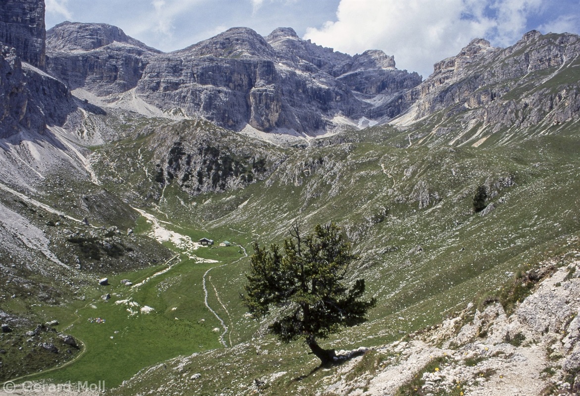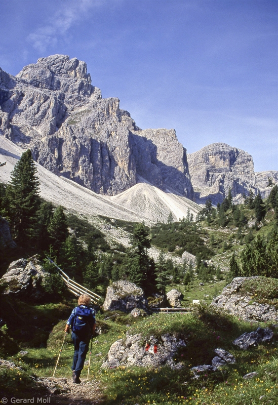 Vom Juëljoch (1725 m), oberhalb von Campill, folgen wir erst dem Weg 6, dann dem Weg 12 zum Kreuz am Crëp dales Dodesc (2384 m) am Antersasc.