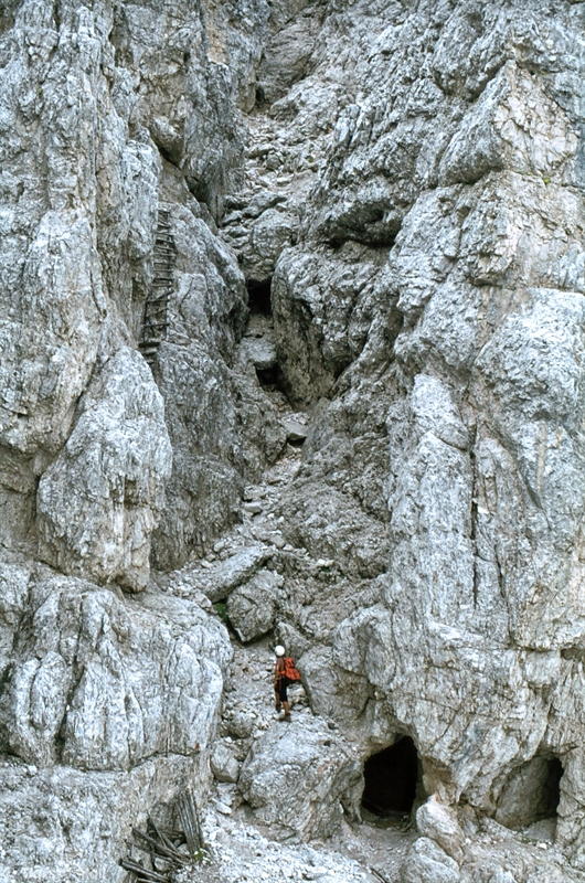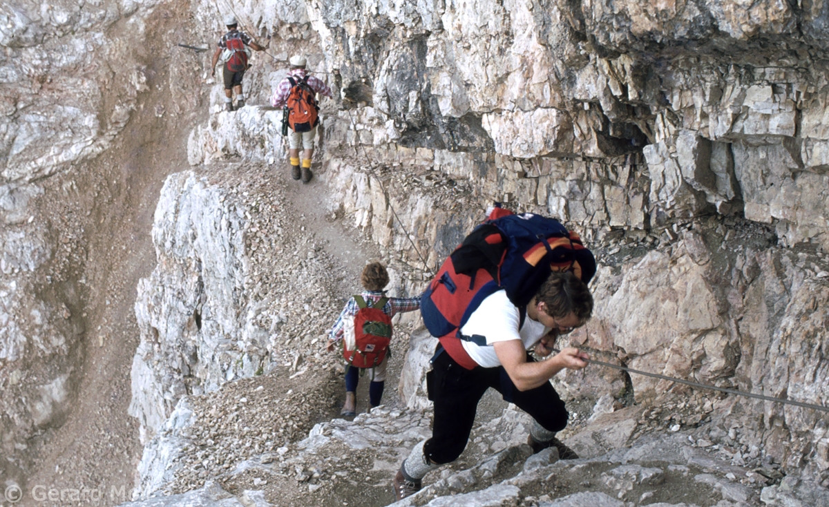 Drehscheibe für die Klettersteige am Cristallo ist das Rifugio Lorenzi (2932 m) an der Forcella Staunies. Leider wurde der Lift dorthin im Jahr 2017 geschlossen. Hier ist der Ausgangspunkt für 3 Klettersteige: Die Via Ferrata Marino Bianchi zum Cristallo Mittelgipfel (3154 m), die Via Ferrata René de Pol mit vergleichsweise wenig Klettersteigstrecken, und der Dibonaweg mit seiner berühmten Hängebrücke.
