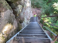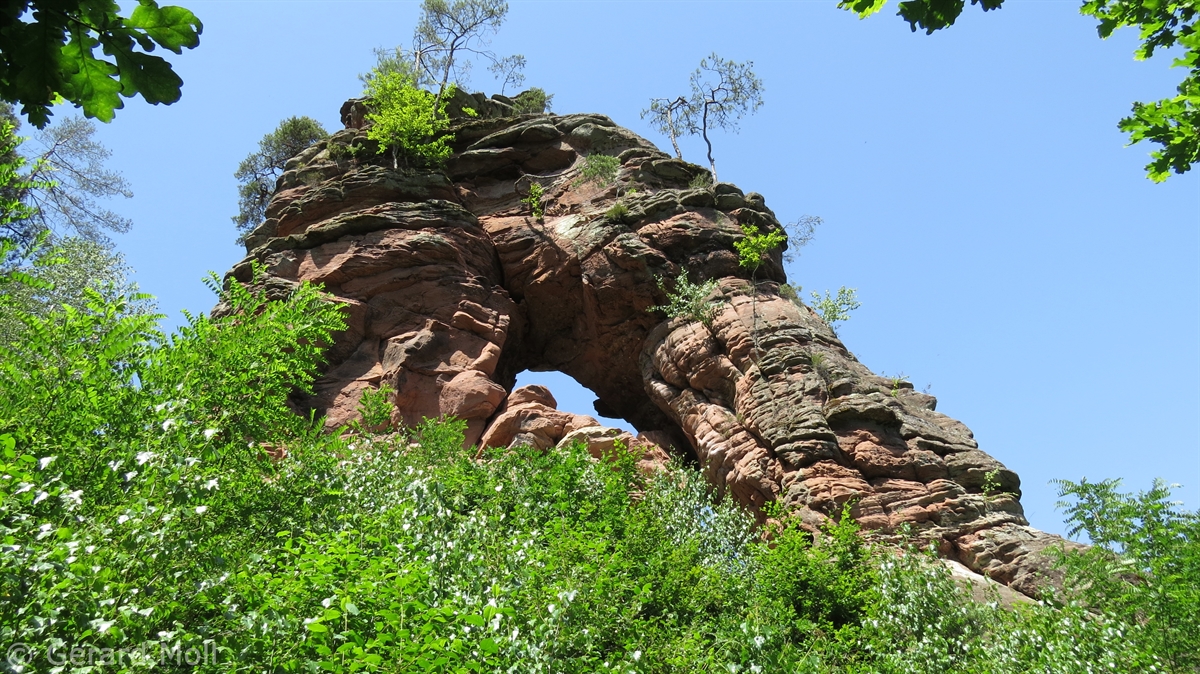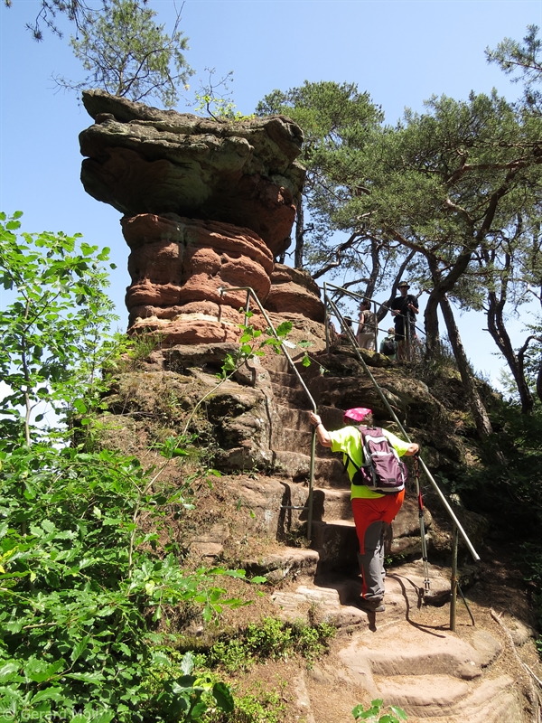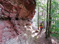 Der Dahner Felsenpfad bietet unglaubliche Ausblicke auf viele wilde Felstürme aus rotem Sandstein. Unterwegs lädt die Dahner Hütte zu einer Rast ein.