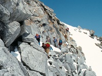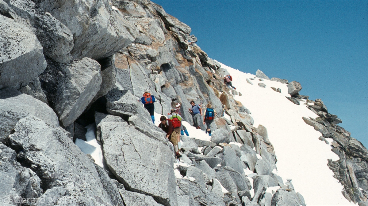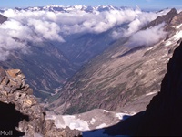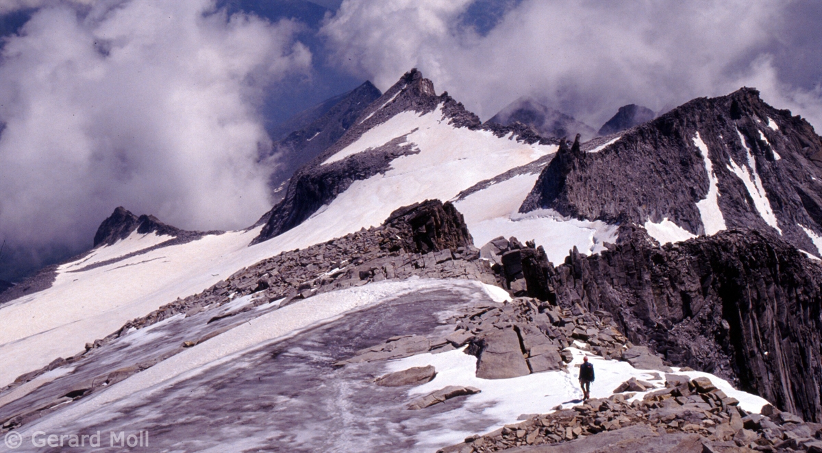 Vom Säuleck klettern wir den gesicherten und ausgesetzten Grat über die Gussenbauerspitze (2981 m) und die Schneewinkelspitze (3016 m) zur Lassacher Winkelscharte (2856 m). Von hier geht es steil hinauf zum Gipfel der Hochalmspitze (3360 m). Die "Tauernkönigin" ist der höchste Gipfel der Ankogelgruppe, Erfahrung in Fels und Eis ist notwendig um sie zu besteigen. Der Abstieg führt uns zu den Steinernen Mandln und dann steil hinunter zur Giessener Hütte (2202 m). Wer nach Mallnitz zurück muss, kann über den Buderusweg und die Mallnitzer Scharte (2673 m) zurück zum Arthur-von-Schmid-Haus gelangen.