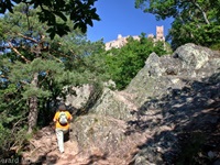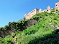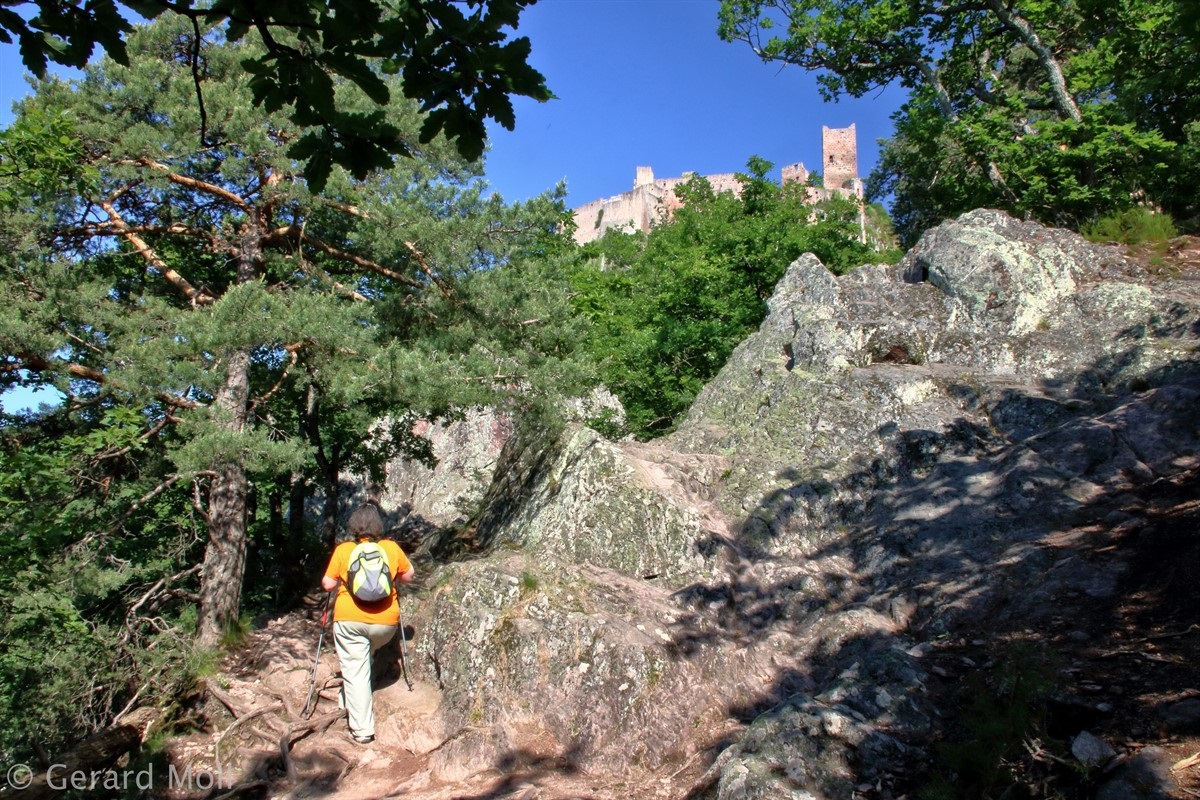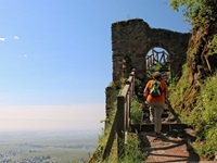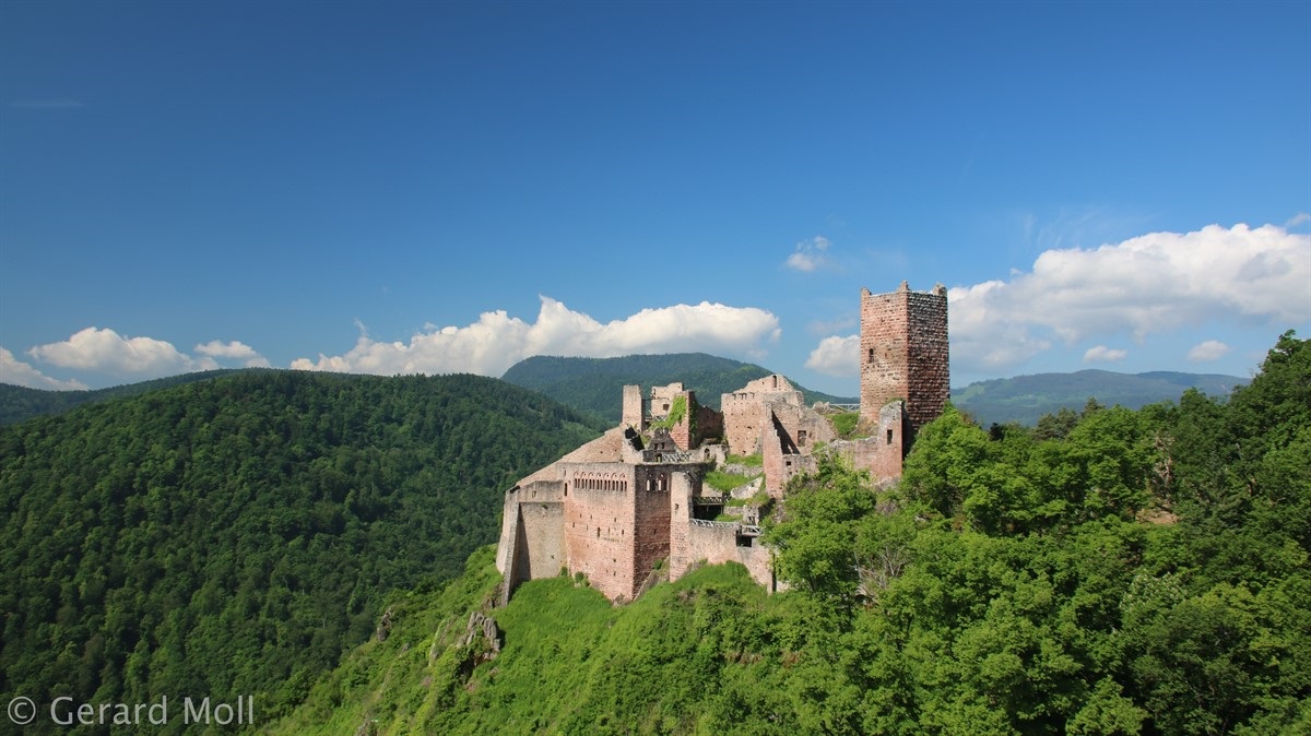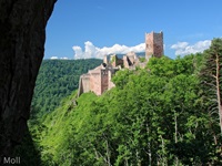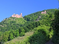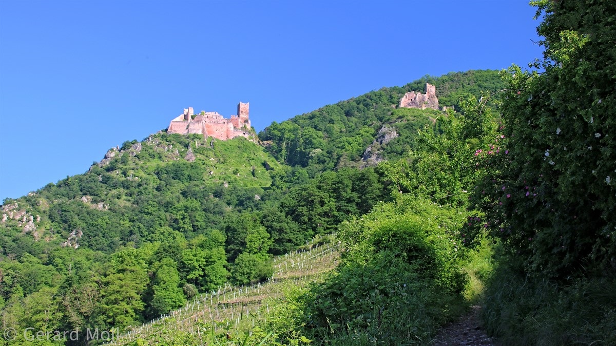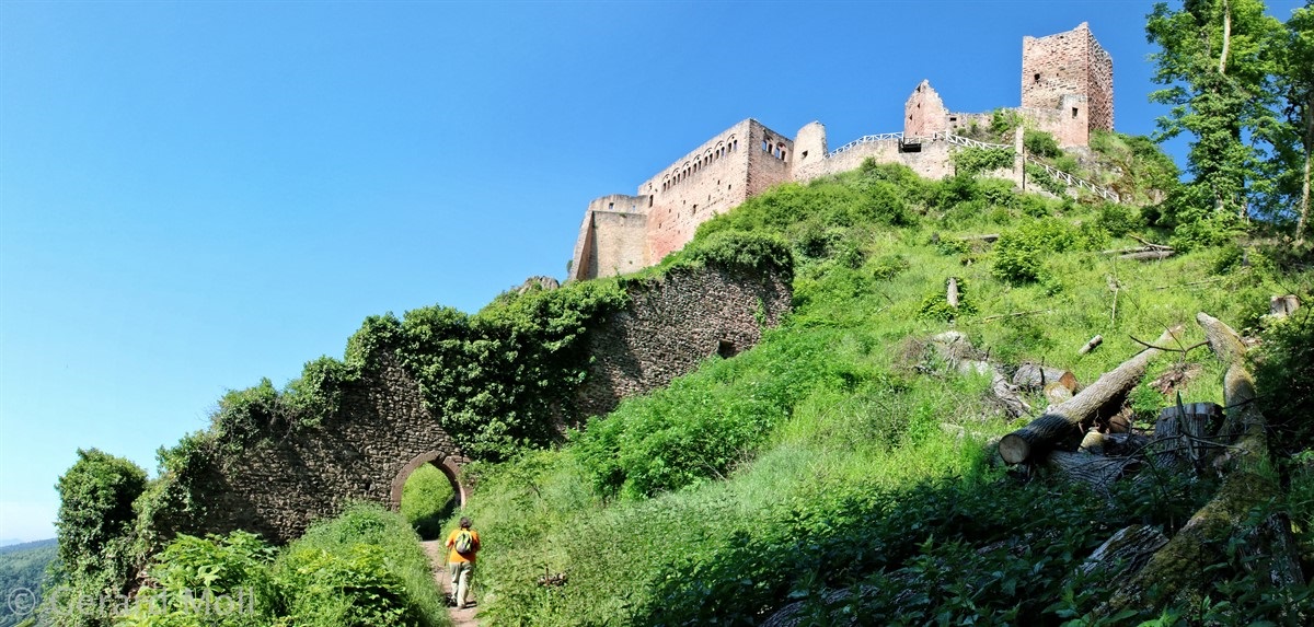 Von dem schönen Ort Ribeauvillé wandern wir bergauf zu der ersten der drei Burgen, der Ulrichsburg (Château de Saint-Ulrich). Nach einer Besichtigung machen wir einen Abstecher zu unserem zweiten Ziel, der Burg Girsberg (Château du Girsberg). Danach geht es noch weiter hinauf zu der dritten Burg, der Burg Hohrappolststein (Château du Haut-Ribeaupierre). Von hier steigen wir ab zum Wallfahrtsort Notre-Dame de Dusenbach, in dem sich ein Kapuzinerkloster befindet. Als Abschluss machen wir noch einen kleinen Rundgang durch Ribeauvillé.