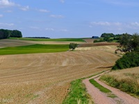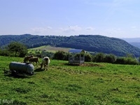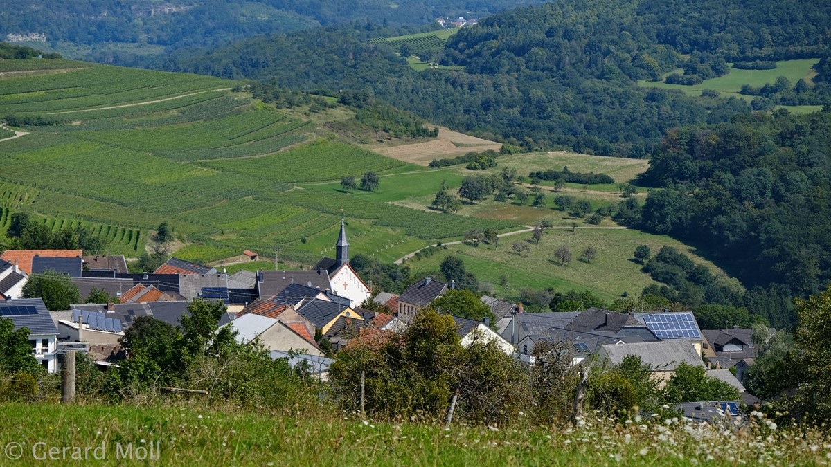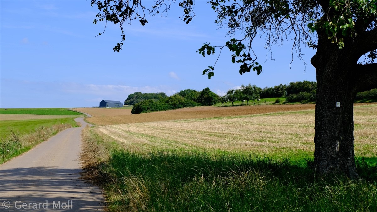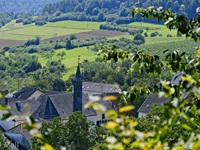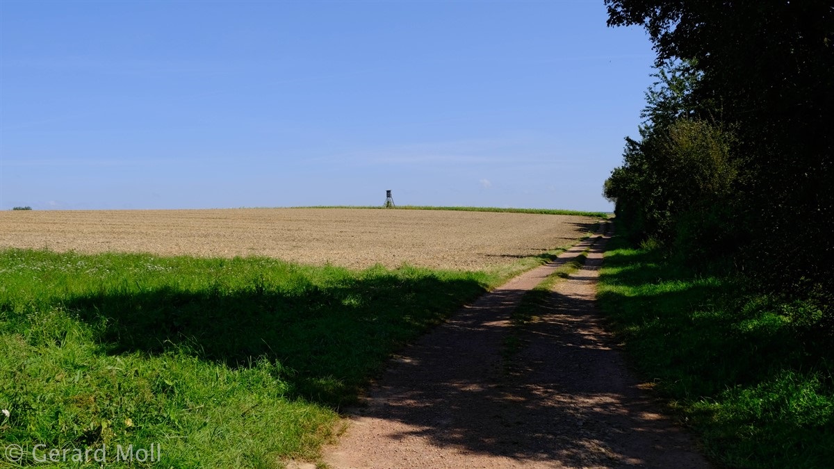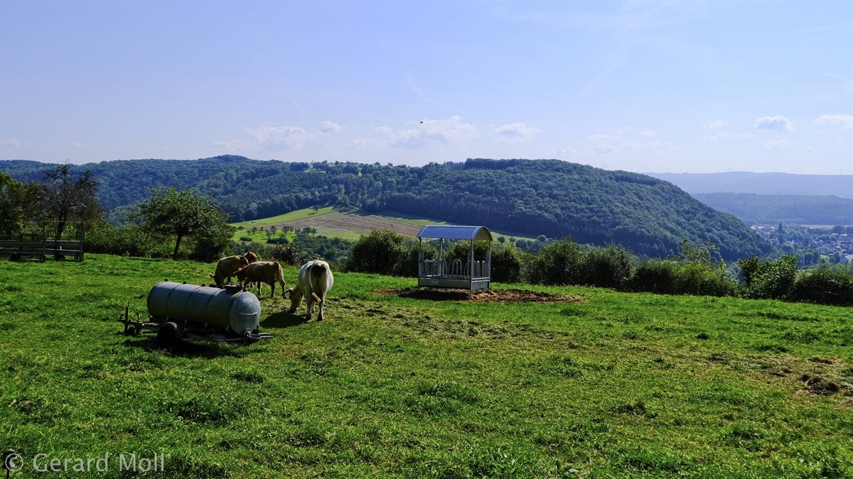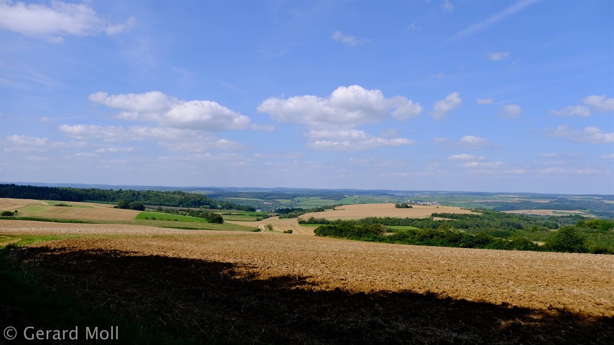 Da es auf dem Plateau oberhalb von Fellerich keinen offiziellen Rundweg gibt, haben wir uns diese Runde mit Hilfe der Karte zusammengesetzt. Am Waldrand kurz oberhalb von Fellerich an der L136 befindet sich ein Parkplatz, von dem wir zuerst in nord-östlicher Richtung losgegangen sind. Über Felder kommen wir zu einem Wegweiser, von dem aus wir durch Wald zu der Oberbilliger Grillhütte gelangen. Von der nahegelegenen Rochuskapelle bringt uns der aussichtsreiche Weg zurück zum Ausgangspunkt. Anschließend wechseln wir die Straßenseite und wandern hinauf zur 371 Meter hohen Rölerhöcht. Nach der "Wüstung Birkelterhof" verkündet ein Hinweisschild, dem Moselsteig zuerst nach rechts und dann links zum Waldrand zu folgen. Besser wäre es aber, nicht unserem Track zu folgen, sondern an der Linksabbiegung geradeaus weiterzugehen, um zum Parkplatz zurück zu kommen.