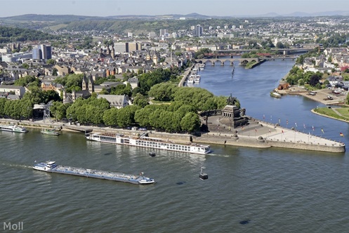 Die Quelle der Mosel befindet sich in Frankreich, am Col de Busang in den Vogesen auf einer Höhe von etwa 700 m. Mit einer Länge von 544 km ist sie der zweitgrößte Nebenfluss des Rheins. Wir werden der Mosel flussabwärts von Koblenz, wo die Mosel in den Rhein mündet, bis ins Dreiländereck in Schengen folgen.