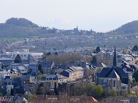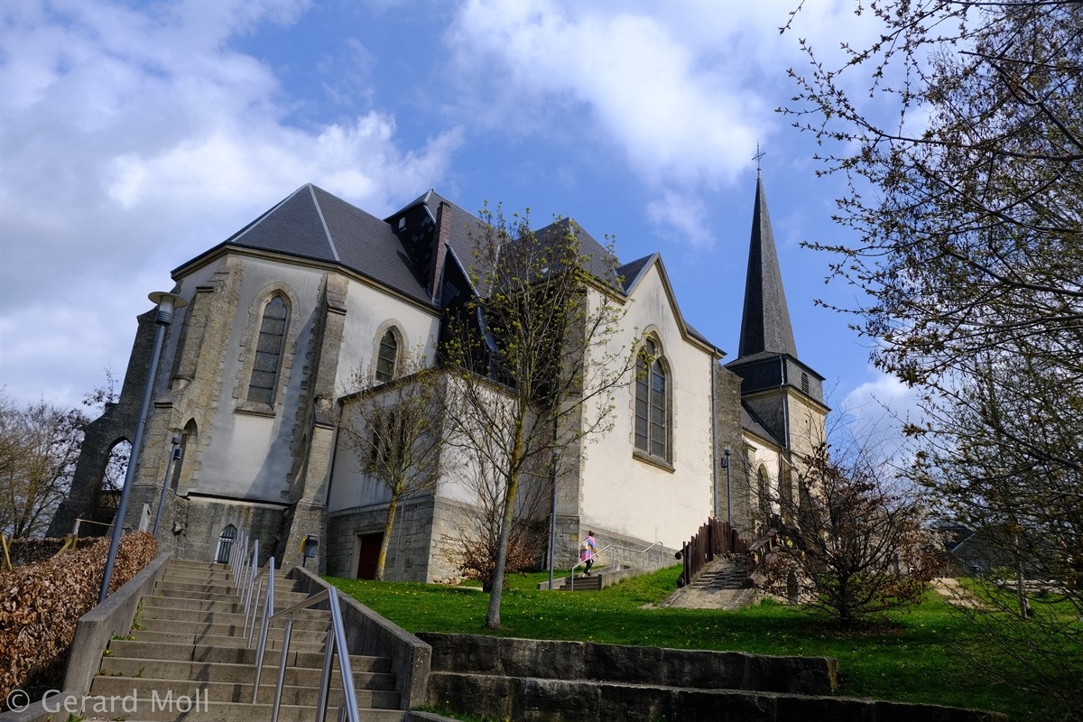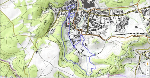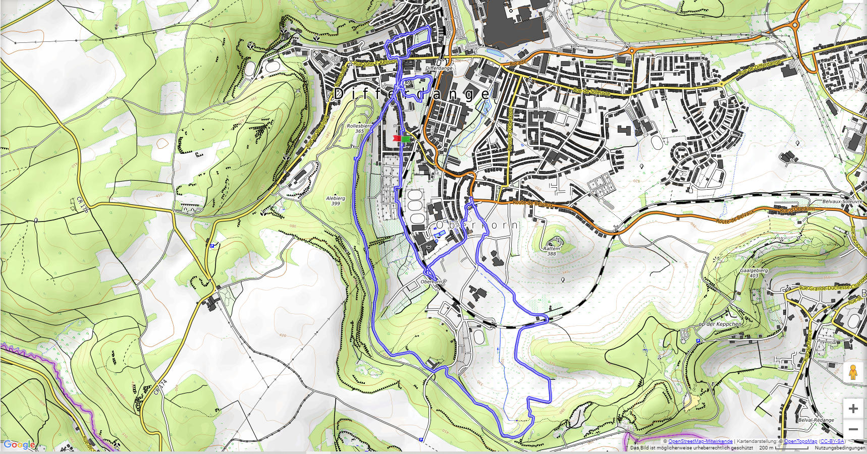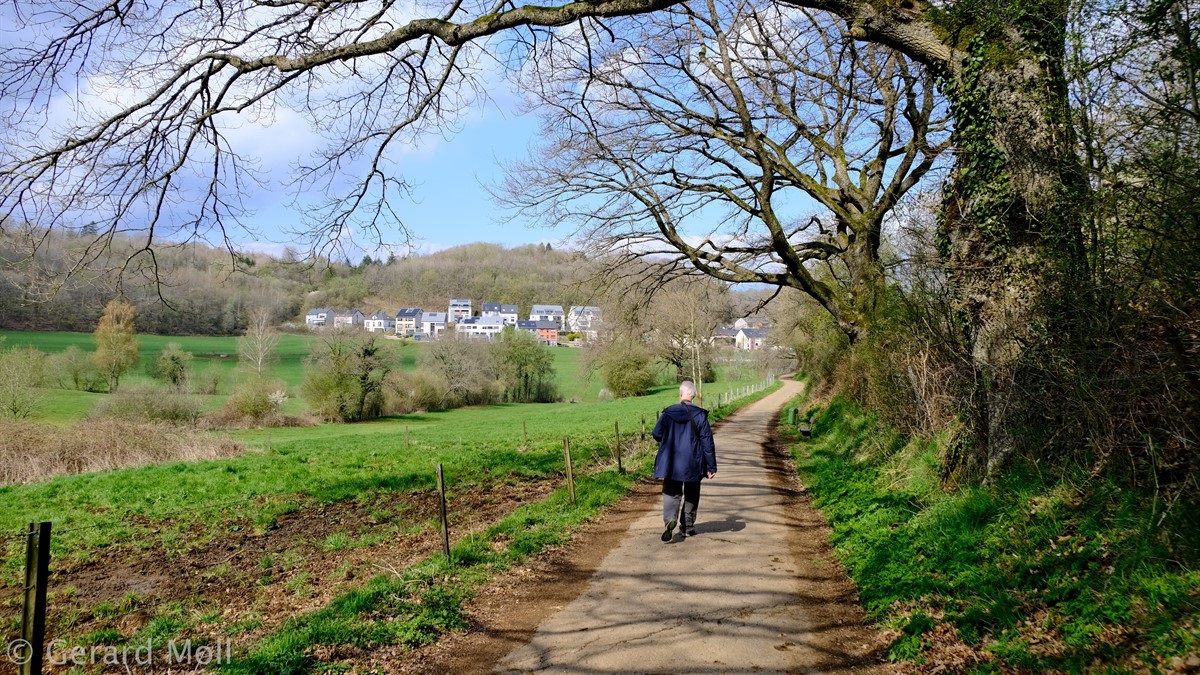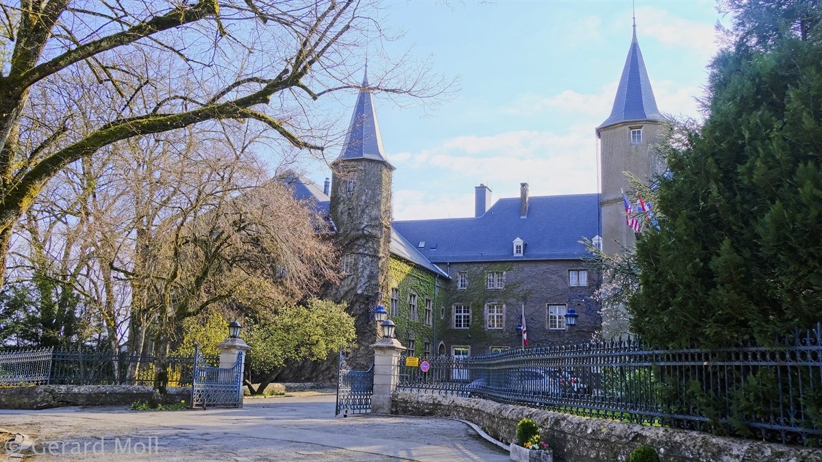 Wir starten am neuen und alten Stadthaus und umrunden das sehenswerte Schloss, in dem die Miami University ihren Sitz hat. Ein kleiner Abstecher bringt uns zu dem Park Gerlach. Hier stand einst Schloss Gerlach, von dem nur noch ein Pavillon erhalten ist. An seiner Stelle überrascht uns ein kleiner Park mit einer Blumenuhr. Dann nehmen wir unsere eigentliche Tour in Angriff, wir wandern unterhalb vom Alebierg in südlicher Richtung bis wir in der Nähe der Quelle der Korn (Chiers) absteigen und Oberkorn erreichen. Entlang der Bahntrasse und am Friedhof vorbei kehren wir nach Differdange zurück.