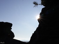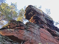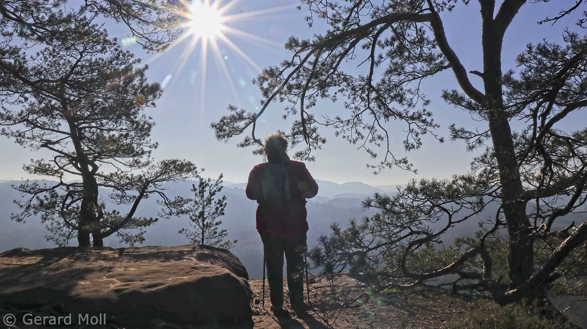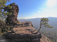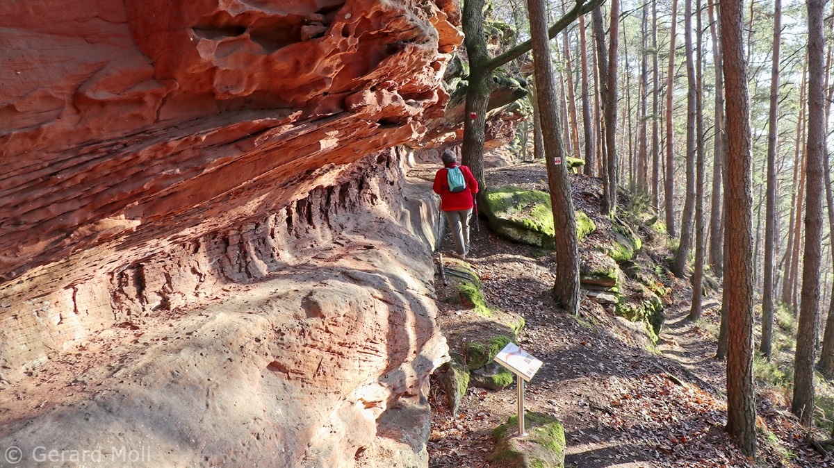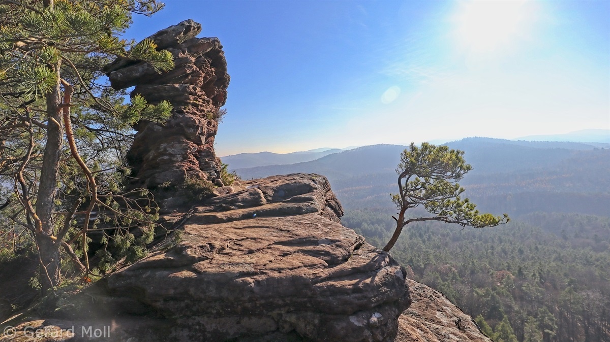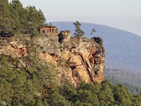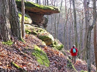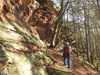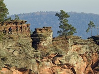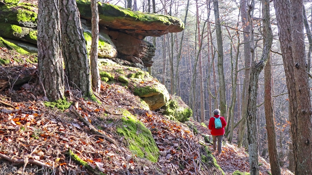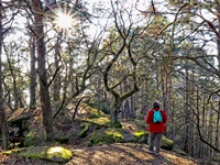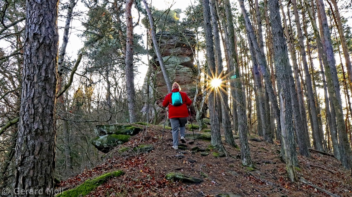 Vom Parkplatz vor dem Ortseingang von Dimbach führt der Weg gleich steil hinauf zum Falkenstein. An zahllosen Felsen vorbei wird der Dimberg erreicht. Weitere herrliche Punkte sind die Rötzenfelsen auf dem Rötzenberg, die Isselmannsteine und die Kieungerfelsen. An dem markanten Keeshäwel-Felsen vorbei, steigen wir zum Schluss nach Dimbach ab.