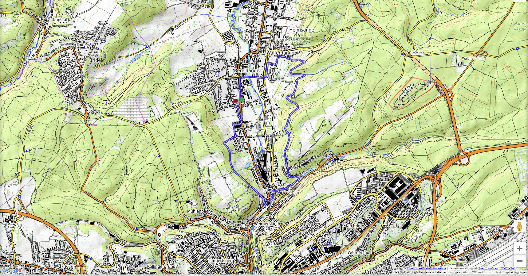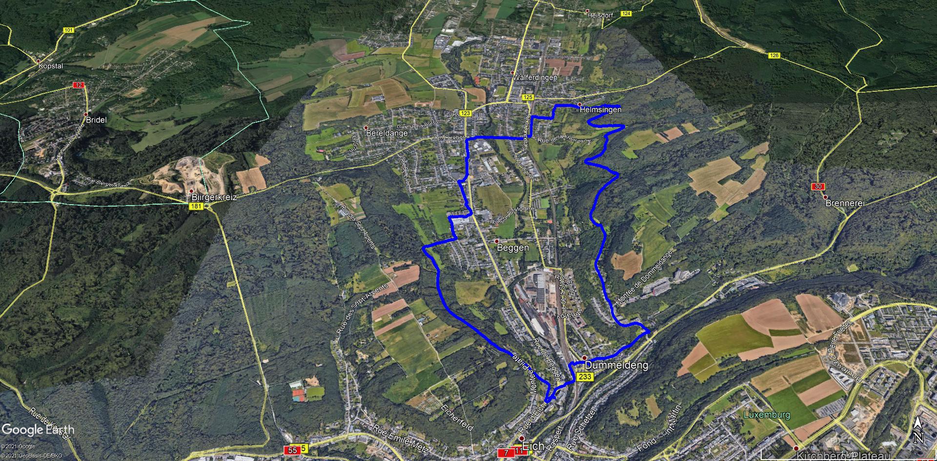 Vom Bahnhof in Dommeldange folgen wir den Markierungen des CFL-Weges 18, der uns über die Höhen über dem Alzettetal bis nach Walferdange-Helmsange führt. Dann durchqueren wir Bereldange und gehen an den Hängen unterhalb des Eicher Feldes zurück nach Dommeldange.