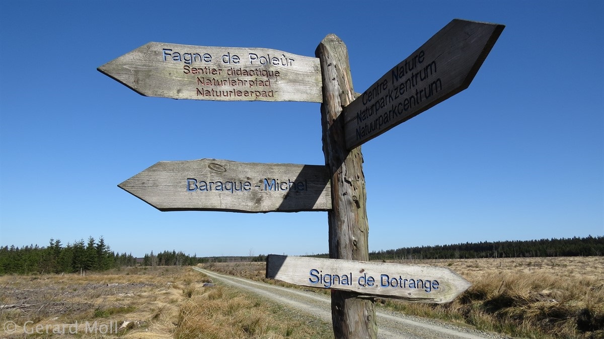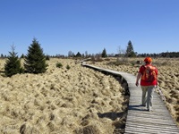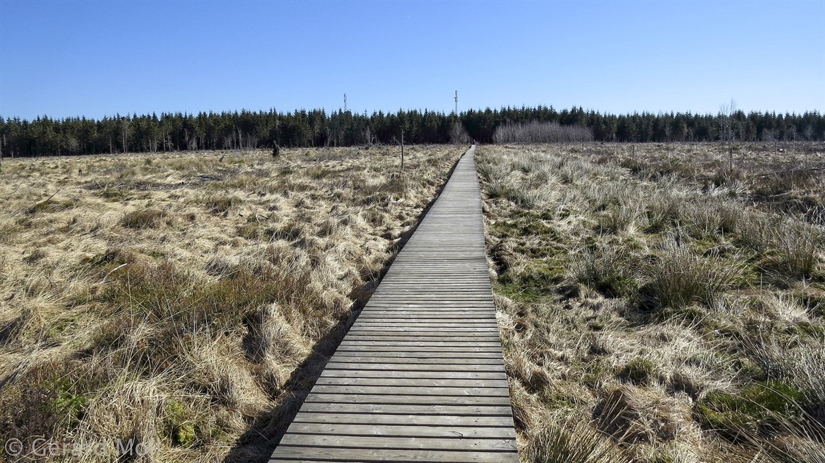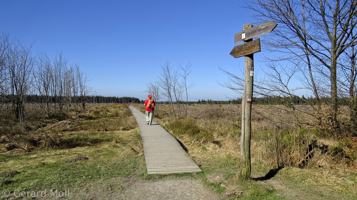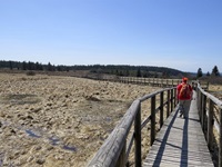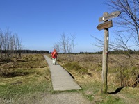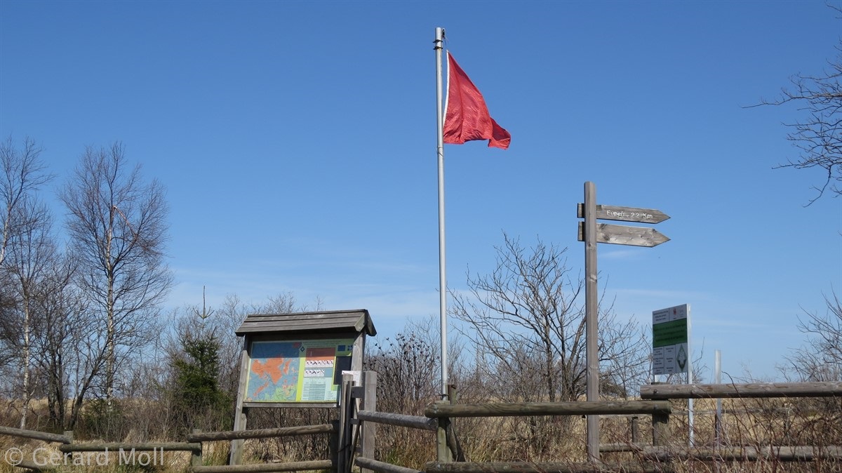 Von der Maison du Parc führt unser Weg zuerst zum Signal de Botrange, mit 700 m der höchste Punkt Belgiens. Dann geht es weiter zur Croix des Fiancés. Das Kreuz erinnert an ein verlobtes Paar, das einst im Schneesturm in Hohen Venn ums Leben kam. Bei der Baraque Michel wollten wir eigentlich das Hohe Venn auf der anderen Straßenseite erkunden, aber dort wehte die rote Flagge, die darüber informiert, dass der Weg gesperrt ist. Daraufhin sind wir, zum Teil auf Holzstegen, über den Mont Rigi zum Ausgangspunkt zurück gekehrt.