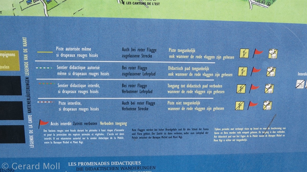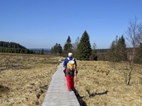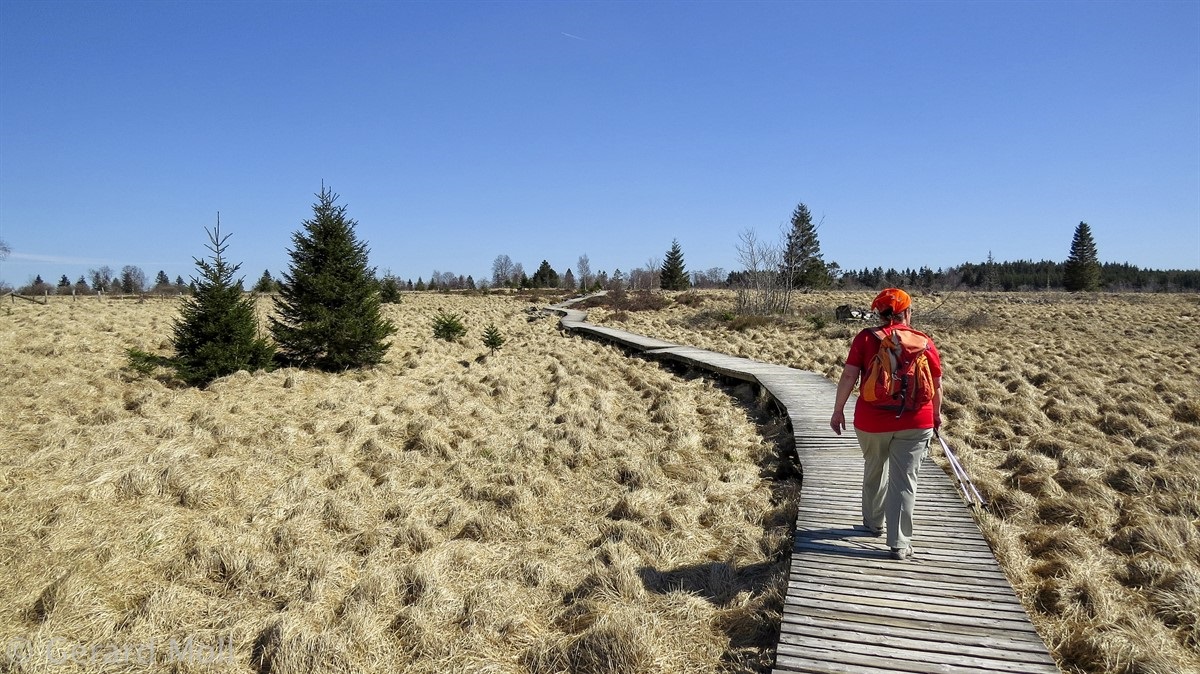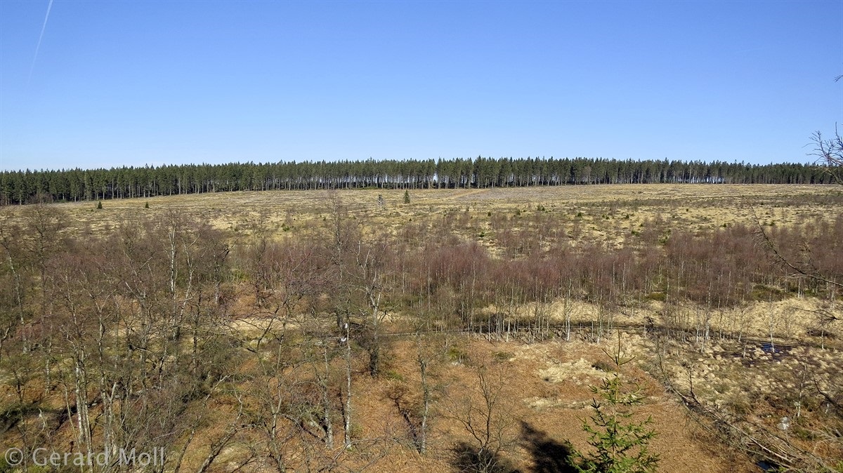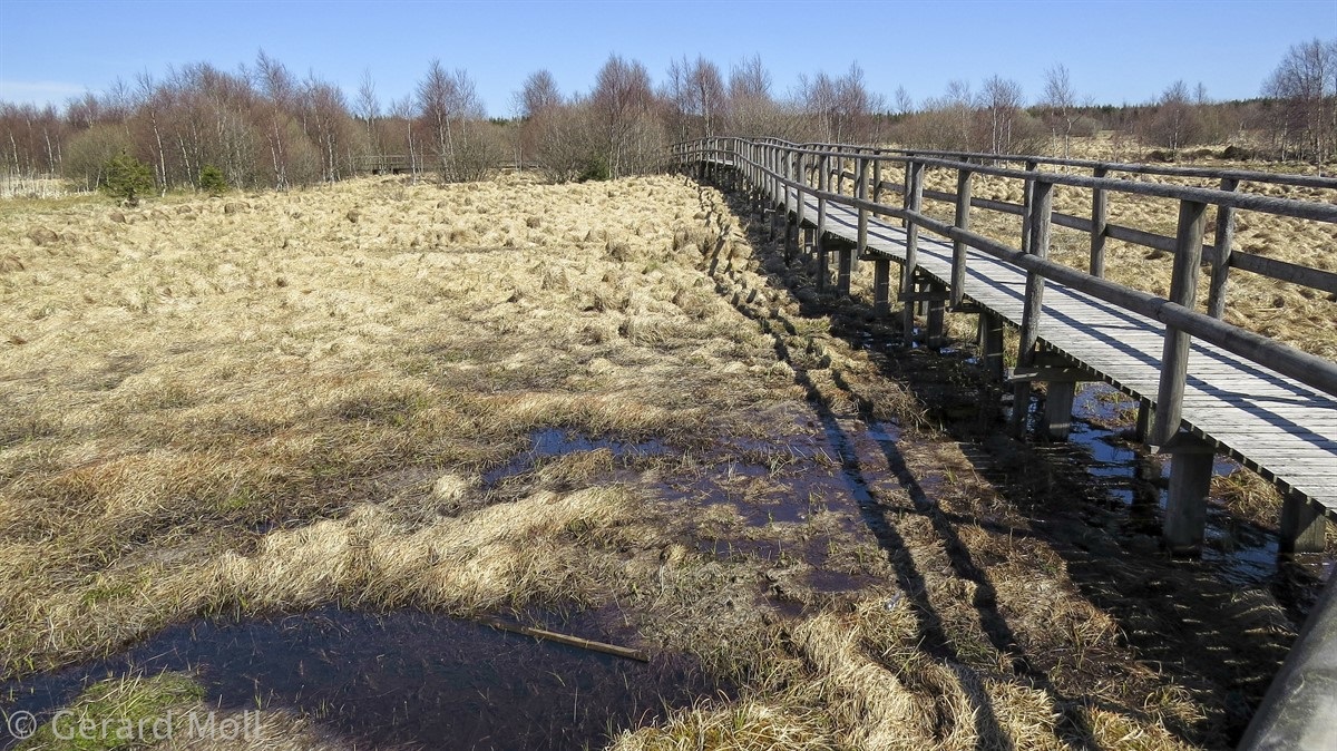 Von der Maison du Parc führt unser Weg zuerst zum Signal de Botrange, mit 700 m der höchste Punkt Belgiens. Dann geht es weiter zur Croix des Fiancés. Das Kreuz erinnert an ein verlobtes Paar, das einst im Schneesturm in Hohen Venn ums Leben kam. Bei der Baraque Michel wollten wir eigentlich das Hohe Venn auf der anderen Straßenseite erkunden, aber dort wehte die rote Flagge, die darüber informiert, dass der Weg gesperrt ist. Daraufhin sind wir, zum Teil auf Holzstegen, über den Mont Rigi zum Ausgangspunkt zurück gekehrt.