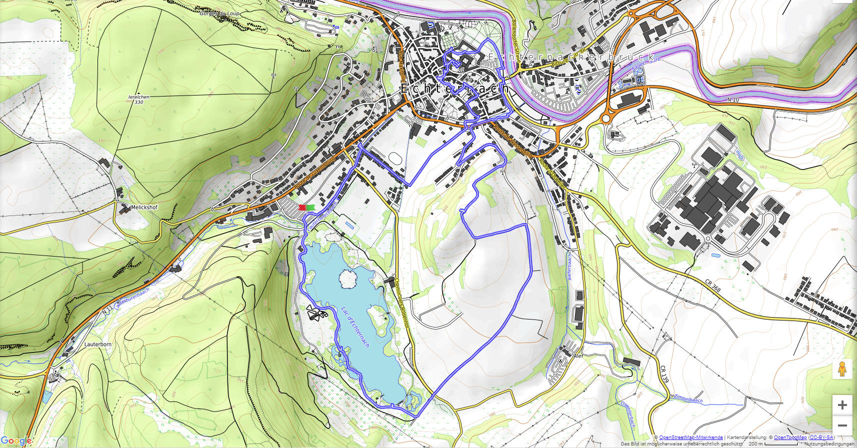 Dieser lokale Wanderweg startet an dem künstlich angelegten Echternacher See und führt um den Hügel Thoull herum nach Echternach. Vor Jahrtausenden floss die Sauer um diesen Hügel herum, ehe sie ihren Lauf änderte. Wir benutzen die Gelegenheit, eine kleine Runde durch das schöne Abteistädtchen zu drehen, ehe wir zum Echternacher See zurückkehren.
