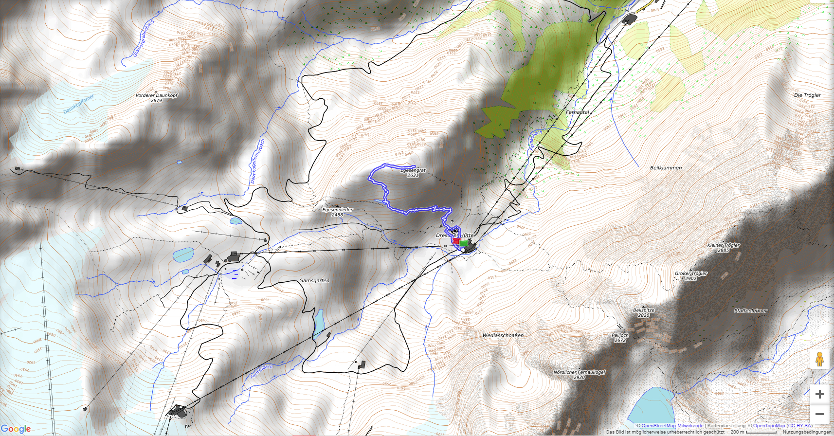 Kurze Tour von der Dresdner Hütte (2308 m). In kurzer Zeit ist der Egesengrat (2631 m) vorbei an einer schöngelegene Lacke erreicht und bietet eine herrliche Rundumsicht. Für Klettersteigfreunde gibt es auch den Fernau- und Fernauexpress-Klettersteig.