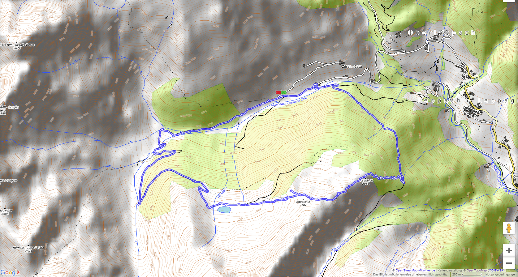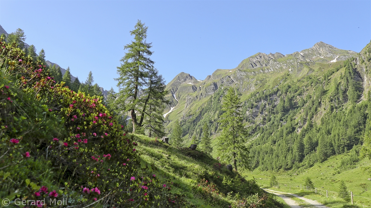 Vor Sand in Taufers zweigt das Mühlwalder Tal ab. Wir folgen der Strasse, bis hinter Lappach ein schmales Sträßchen ins Zösental führt. Hinter der Bergmeisteralm (1720 m) befindet sich ein kleiner Parkplatz. Über die Mair-zu-Hof-Alm führt ein bequemer Fahrweg bis zum kleinen Flemsee (2062 m). Über Wiesenhänge erreicht man den aussichtsreichen Gipfel der Eggespitz (2187 m). Nach dem Zösenbichl (2061 m) geht es dann steil hinunter auf einen Fahrweg, auf dem wir die Bergmeisteralm wieder erreichen. Eine botanische Besonderheit bei dieser Tour waren mehrere Exemplare von weißem Stengellosen Enzian !