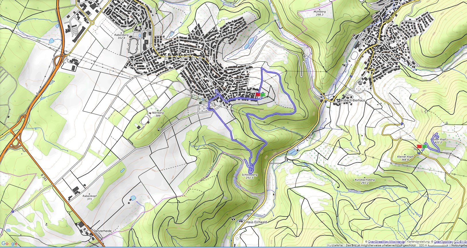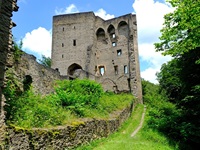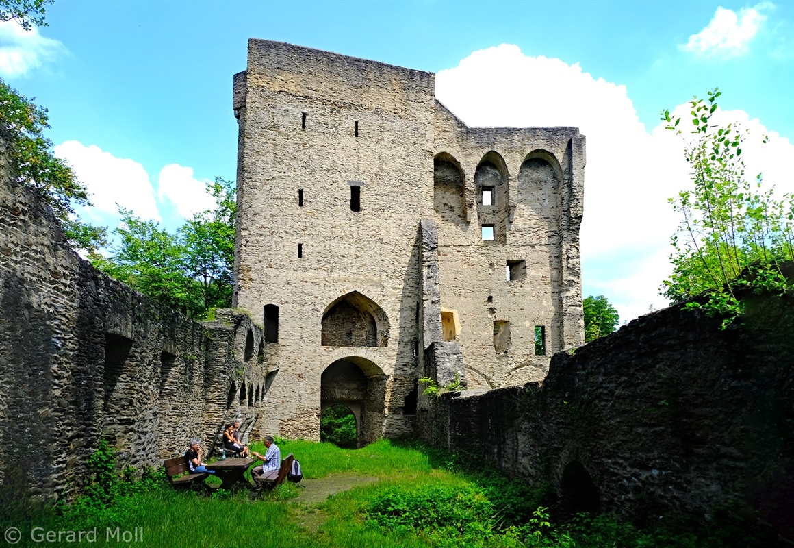 In Eitelborn erinnert die sehr schöne Barbarakapelle seit wenigen Jahren an die Zeiten des Bergbaus in dieser Region. Wir starten hier und folgen einem guten Weg zu der Ruine der Sporkenburg. Die stattliche Burg wurde 1310 errichtet und 1645 im 30jährigen Krieg von den Franzosen zerstört. Wir folgen dem Weg durch Wald und über Felder zum Friedhof und durch den Ort zurück zur Barbarakapelle.