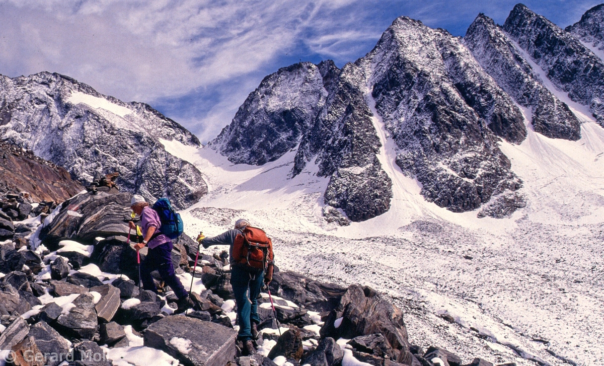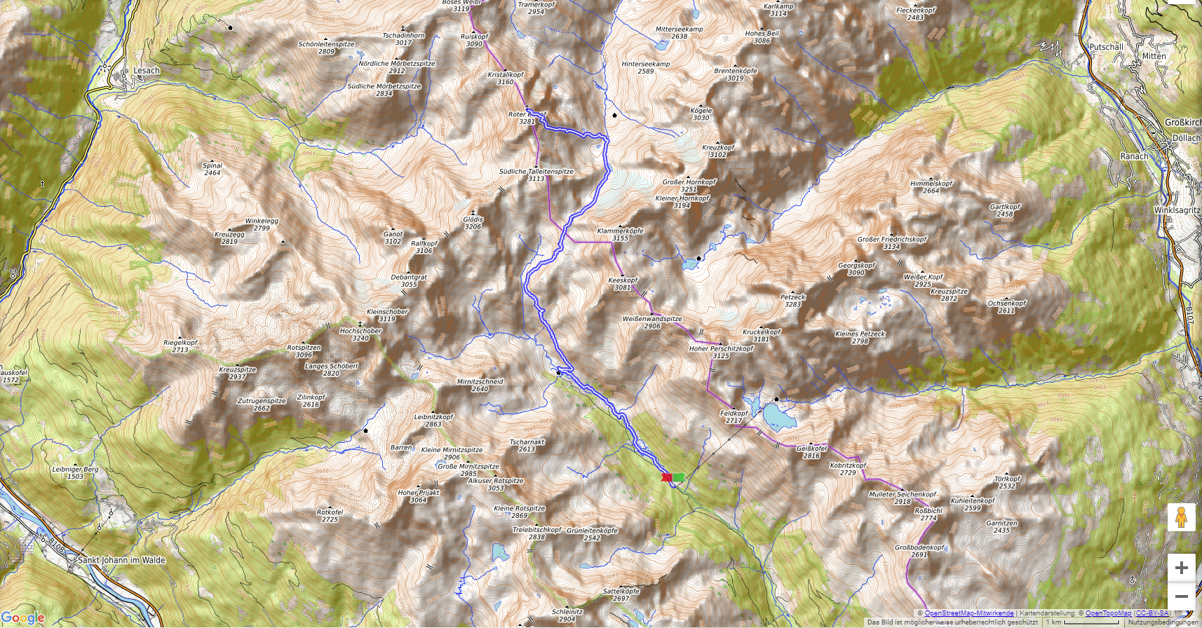 Die Wege zur Elberfelder Hütte (2348 m) sind lang: Egal ob man von Heiligenblut aufsteigt, oder in Seichenbrunn im Debanttal startet, oder sogar von Oberlesach den Weg über das Böse Weibl (3121 m) wählt, man muss immer mit etlichen Stunden Aufstieg rechnen. Von der Hütte sind es dann noch einmal fast 1000 Höhenmeter zum Gipfel des Roten Knopfs (3281 m).