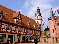 Die Orte Michelstadt und Erbach gehen nahtlos ineinander über. Bei einem Rundgang durch Erbach spazieren wir vom Lustgarten bei der Orangerie zum Schloss der Grafen zu Erbach-Erbach aus dem 18. Jahrhundert. Dann geht es zum Städtel, der mittelalterlichen Altstadt Erbachs mit dem Tempelhaus aus dem Jahre 1378.