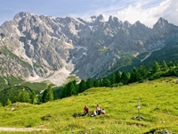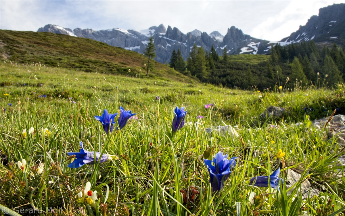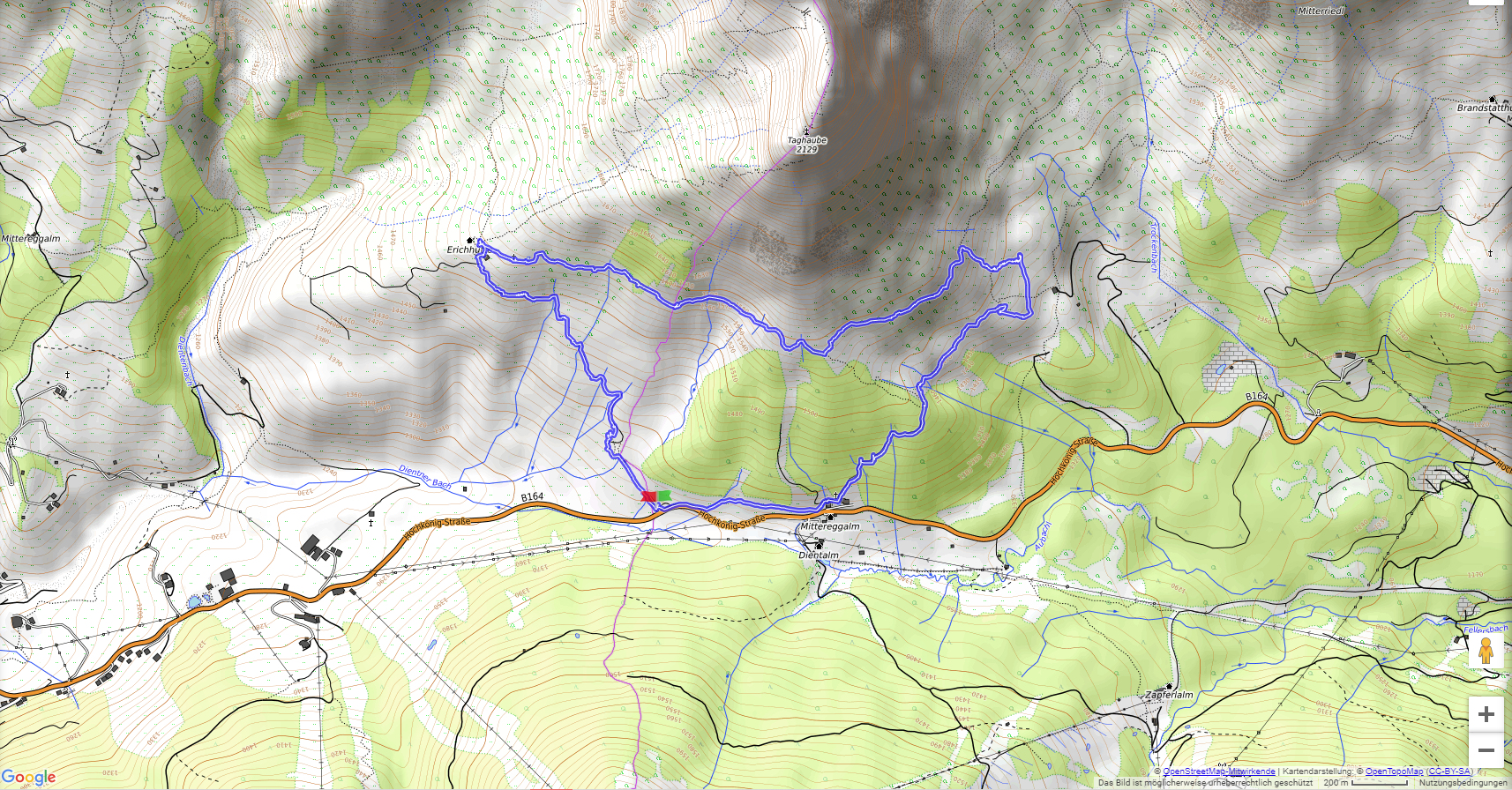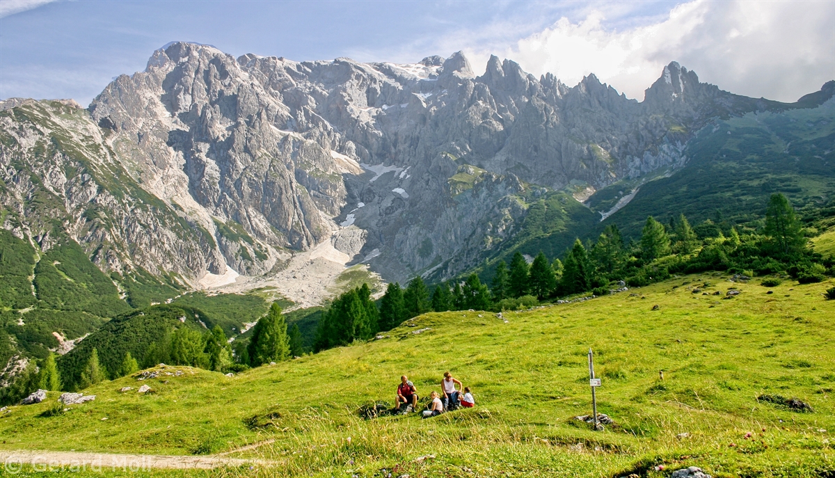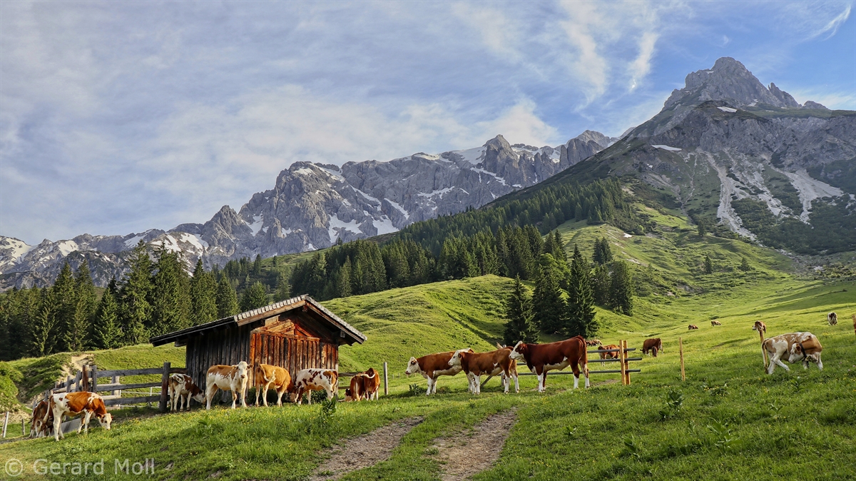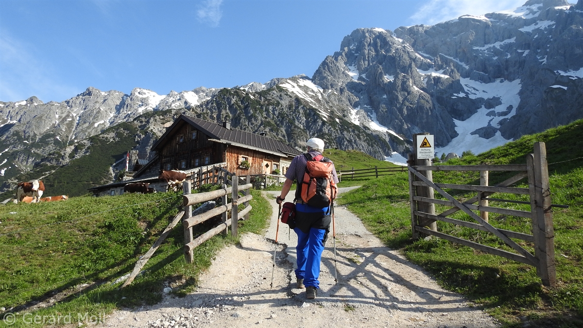 Kurze Wanderung am Dientener Sattel. Vom Parkplatz kurz vor dem Dientener Sattel (1342 m) auf Fahrweg zur Erichhütte (1545 m). Auf einem schönen Höhenweg gehen wir zum Birgkarhaus und kurz über die Strasse zurück zum Parkplatz.