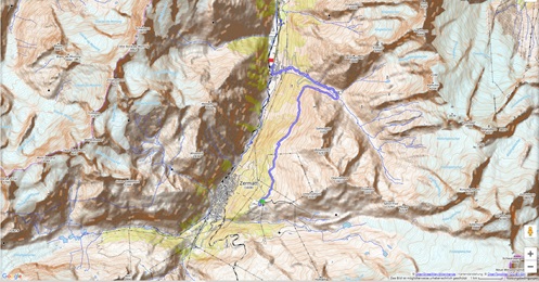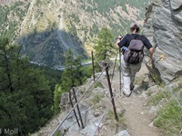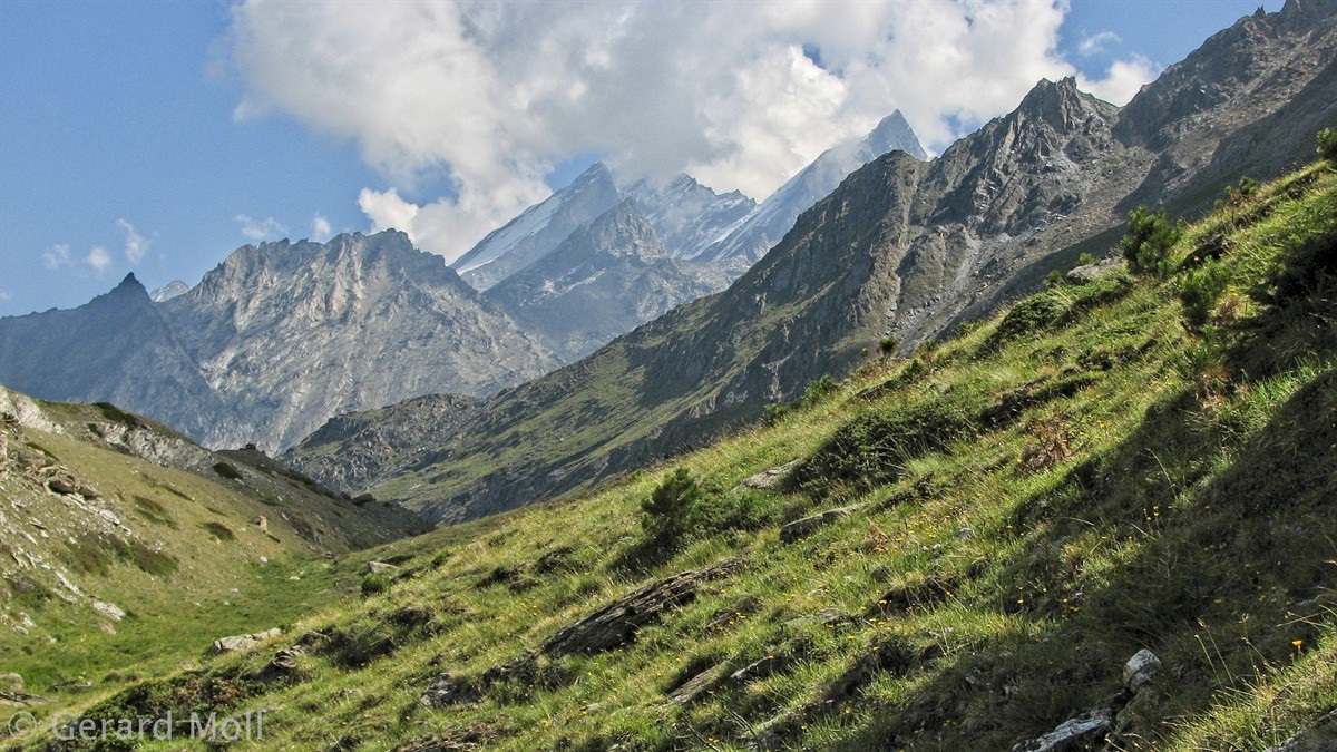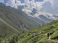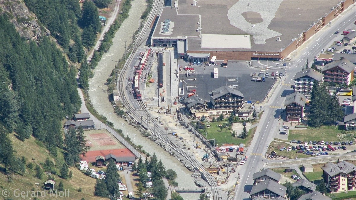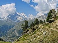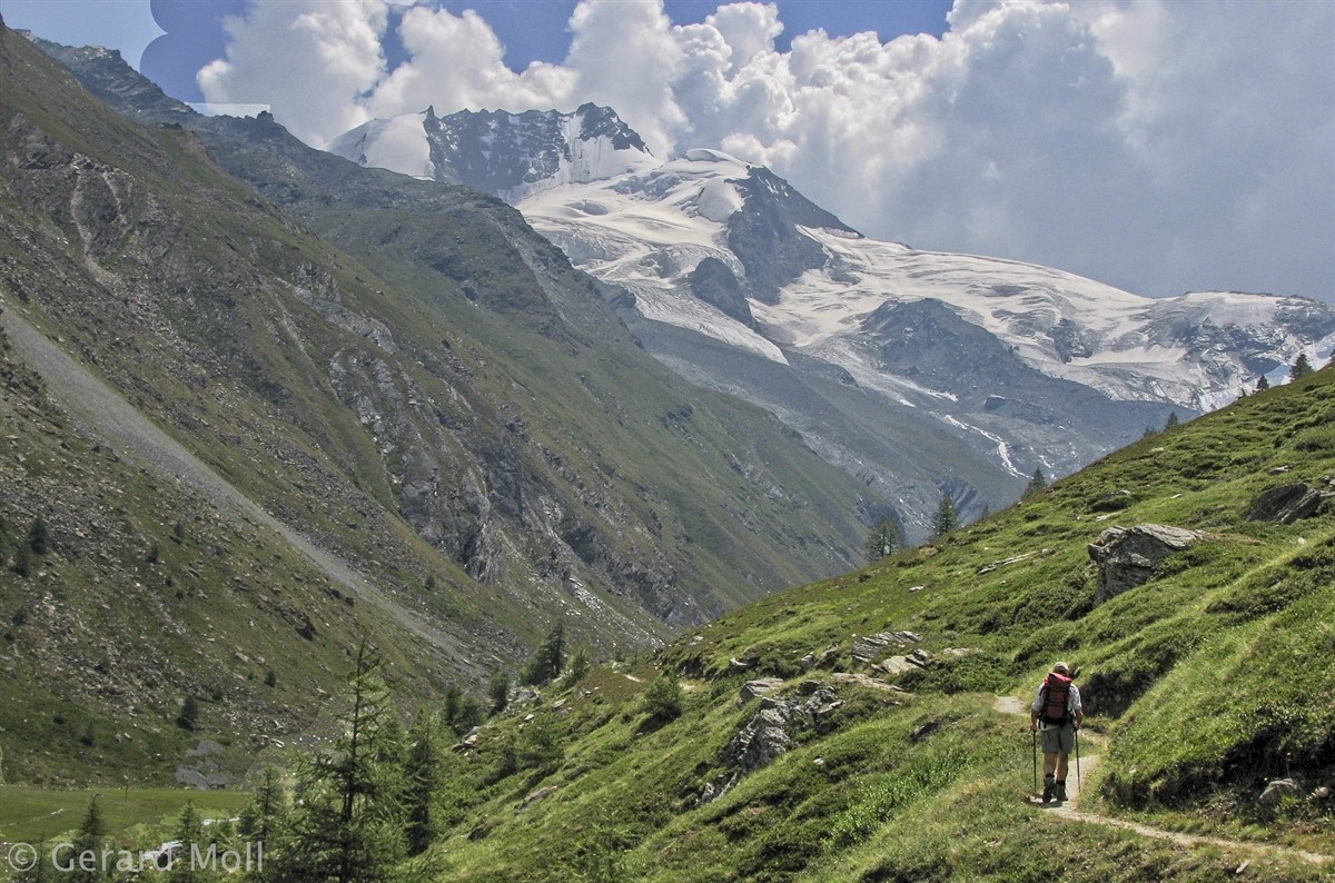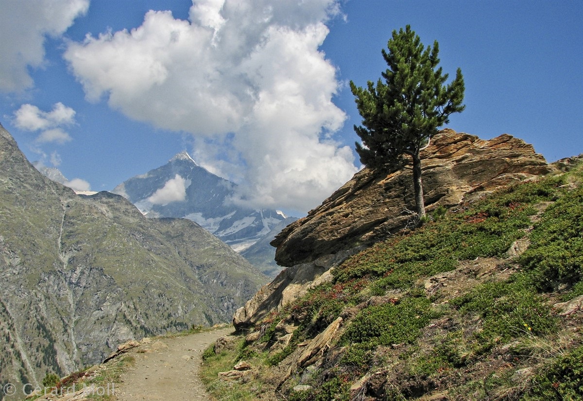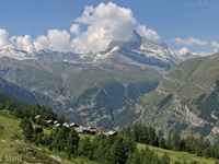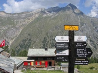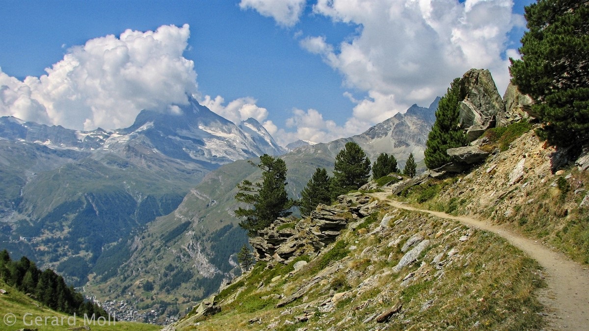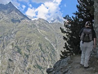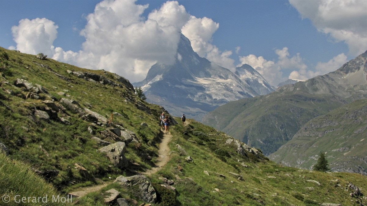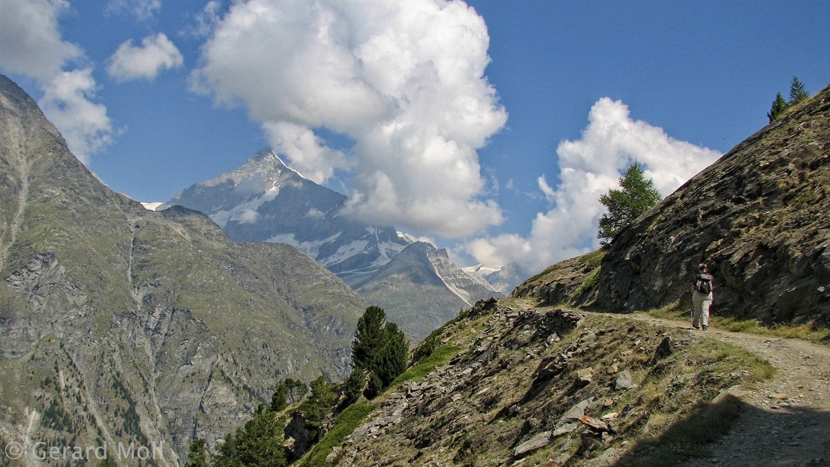 Eine unterirdische Standseilbahn (Métro) hat uns von Zermatt hinauf nach Sunnegga (2280 m) gebracht. Der Europaweg führt bequem zum Weiler Tufteren, wir drehen uns aber immer wieder um, um das Matterhorn zu bestaunen. Der aussichtsreiche Weiterweg bringt uns, zum Teil mit Drahtseilsicherungen, zur Täschalpe Ottafe. Der Europaweg, eigentlich eine Zwei-Tagestour, führt weiter bis nach Grächen, wir aber steigen von der Täschalpe hinunter nach Täsch.