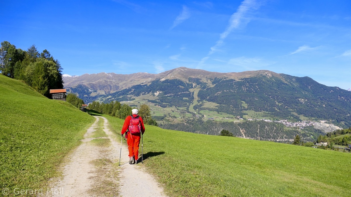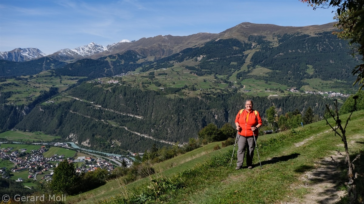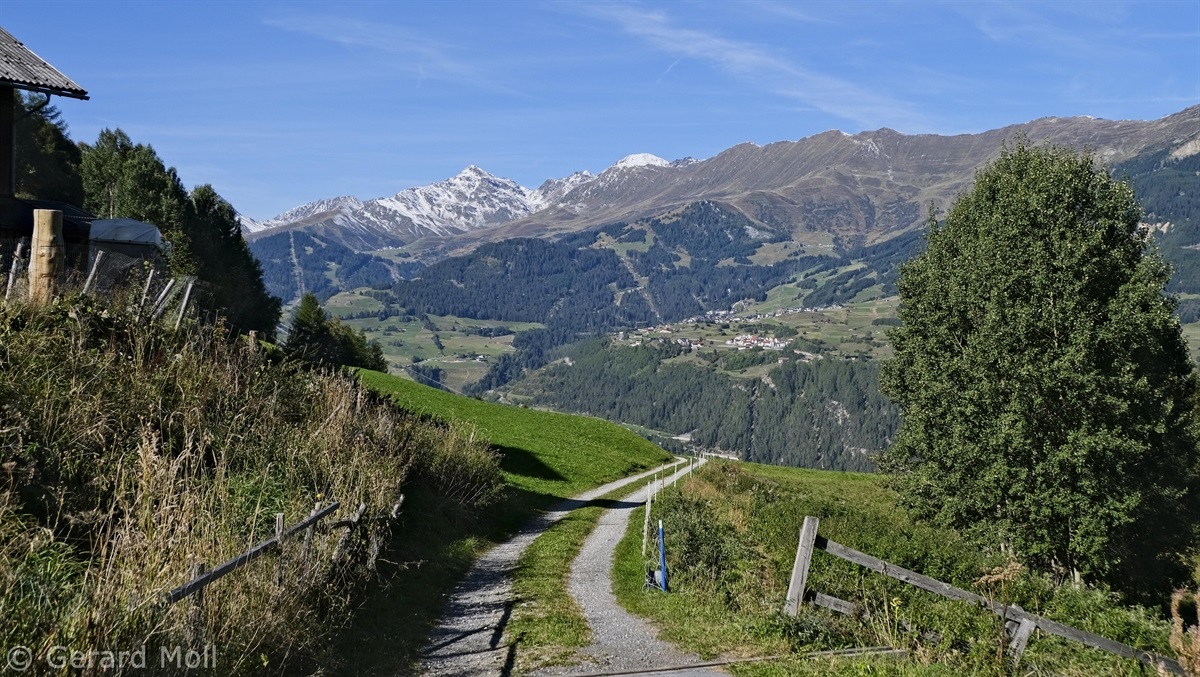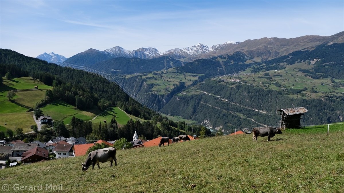 Fendels liegt auf einer aussichtsreichen Terrasse auf 1352 m hoch über dem Inntal. Vom Parkplatz der Seilbahn gehen wir zuerst in westlicher Richtung, dann durchqueren wir den Ort mit seiner sehenswerten Kirche. Weiter geht es zur Aussichtsplattform Hochegg auf 1430 m. Der Tiefblick ins Inntal und auf die gegenüberliegende Terrasse von Serfaus - Fiss - Ladis ist überwältigend. Auf einem bequemen Weg kehren wir zum Ausgangspunkt zurück.