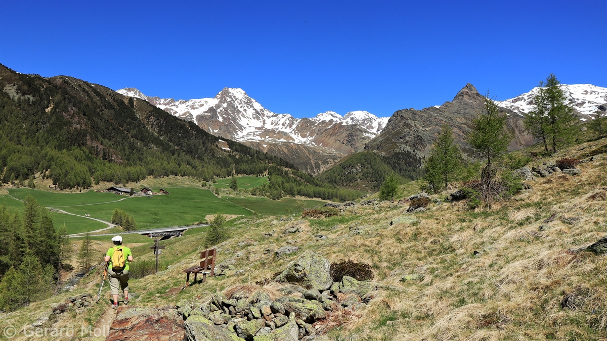 Wir fahren mit dem Linienbus nach Kurzras im hintersten Schnalstal. Vorbei an den Köflhöfen und dem Marchegghof wandern wir auf aussichtsreichem Steig bis zum Fineilhof. Nach einer Pause geht es über Raffeinhof und Tisenhof bis hinunter nach Vernagt am gleichnamigen Stausee.