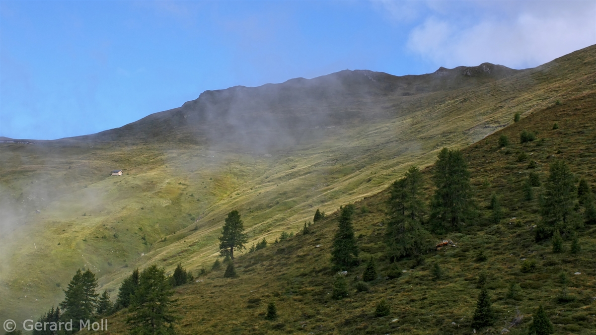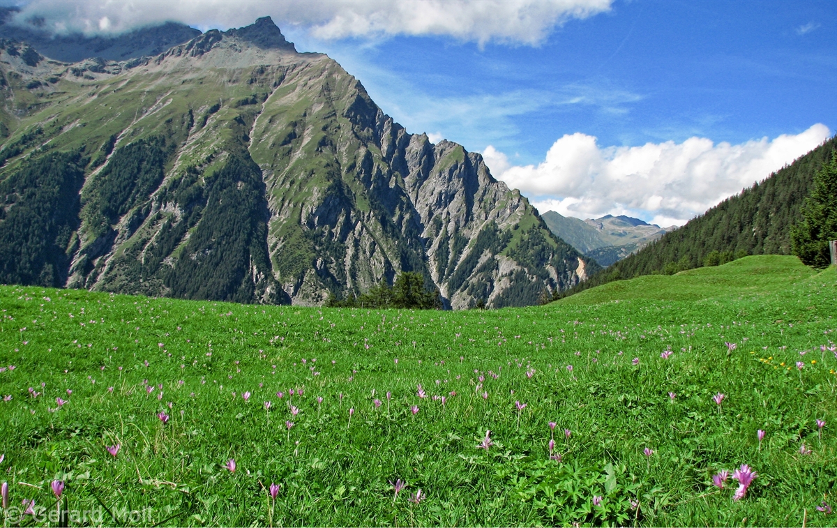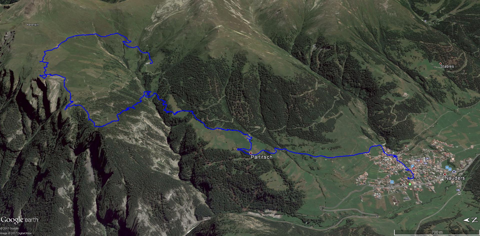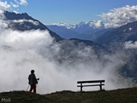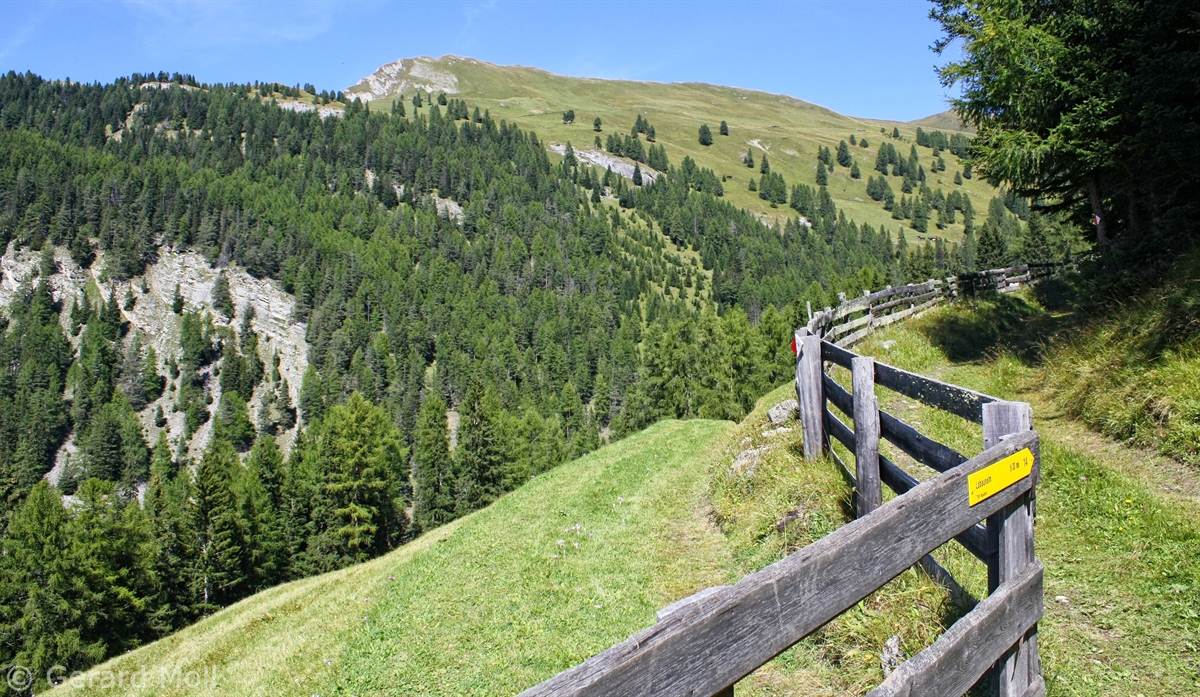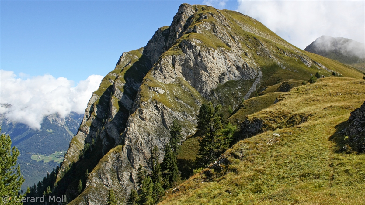 Von Nauders am Reschenpass kann man sich fast 600 Höhenmeter sparen, wenn man den Taxidienst zur Labaunalpe (1977 m) nutzt. Von hier geht es über schöne Wiesen zum Gipfel der Fluchtwand (2328 m). Entweder über den Edelweiss-Klettersteig oder hinunter durch sehr steile Edelweiss-Wiesen steigt man zum Bazahler Kopf (2160 m) ab. Über den Parditschhof (1641 m) kehren wir nach Nauders (1394 m) zurück.